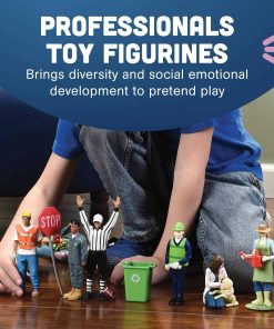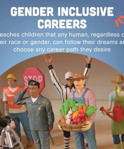 El Set de Figuras de Juguete de Profesionales Ficticios de Constructive Playthings será una adición emocionante al juego de bloques de su hijo. Estas figuras inclusivas traen diversidad al juego de simulación y apoyan las dinámicas familiares multigeneracionales, desde bebés hasta abuelos, al mismo tiempo que presentan a los niños una variedad de profesiones de una forma divertida. La representación de carreras inclusivas de género y diferentes razas enseña a los niños que cualquier ser humano, independientemente de su raza o género, puede seguir sus sueños y elegir cualquier camino profesional que desee. El conjunto de 12 figuras inclusivas es ideal para usar en preescolares, guarderías, escuelas dominicales, cuidado infantil y sesiones de terapia, apoyando el desarrollo socioemocional y el juego diverso a medida que su hijo juega con figuras que representan diferentes grupos étnicos y carreras. Cada figura de muñeco de pie se pinta bellamente y se detalla de manera realista. Su hijo podrá sentir los detalles en cada muñeco, como las ondulaciones en su ropa, promoviendo la autorregulación a través del juego sensorial activo. Hechas de vinilo sólido, estas pequeñas figuras de muñecos son resistentes, lo que las hace ideales para los más pequeños que pueden lanzar, pisar o morder sus muñecos. La figura más alta mide 5″ de altura, haciendo que el juego sea perfecto para las manos pequeñas de los niños de 3 años en adelante.