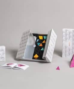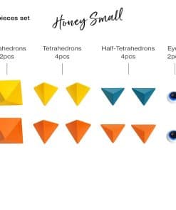 6. ¿QUÉ HAY EN LA CAJA: 2 octaedros, 4 tetraedros, 4 medio tetraedros, 2 ojos (en total 12 piezas) + Folleto. Un set pequeño es una introducción a Trido y es el compañero perfecto para un viaje o trabajo de escritorio.