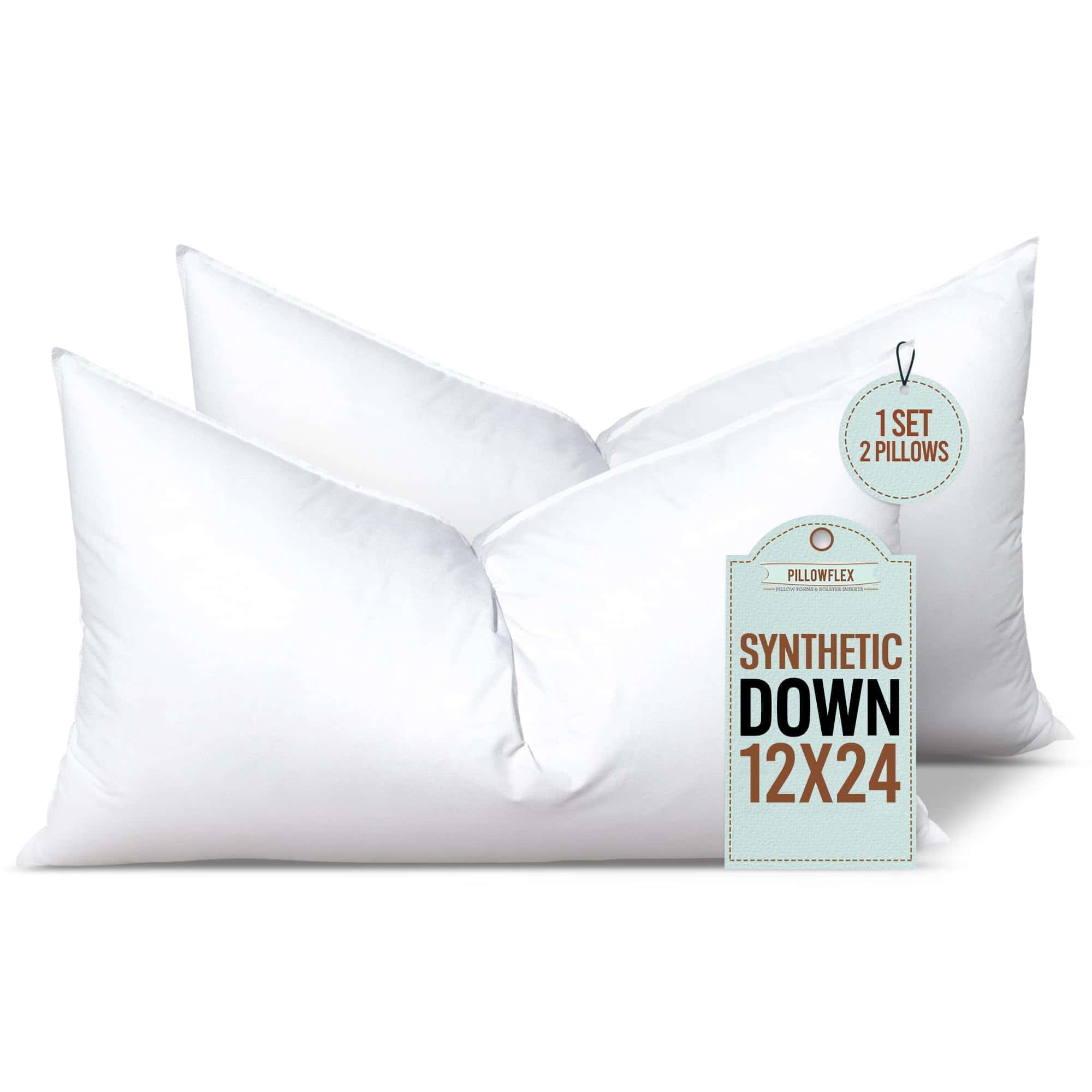 Set de 2 almohadas de relleno sintético alternativo para utilizar en fundas decorativas. Medidas de 12 pulgadas por 24 pulgadas.