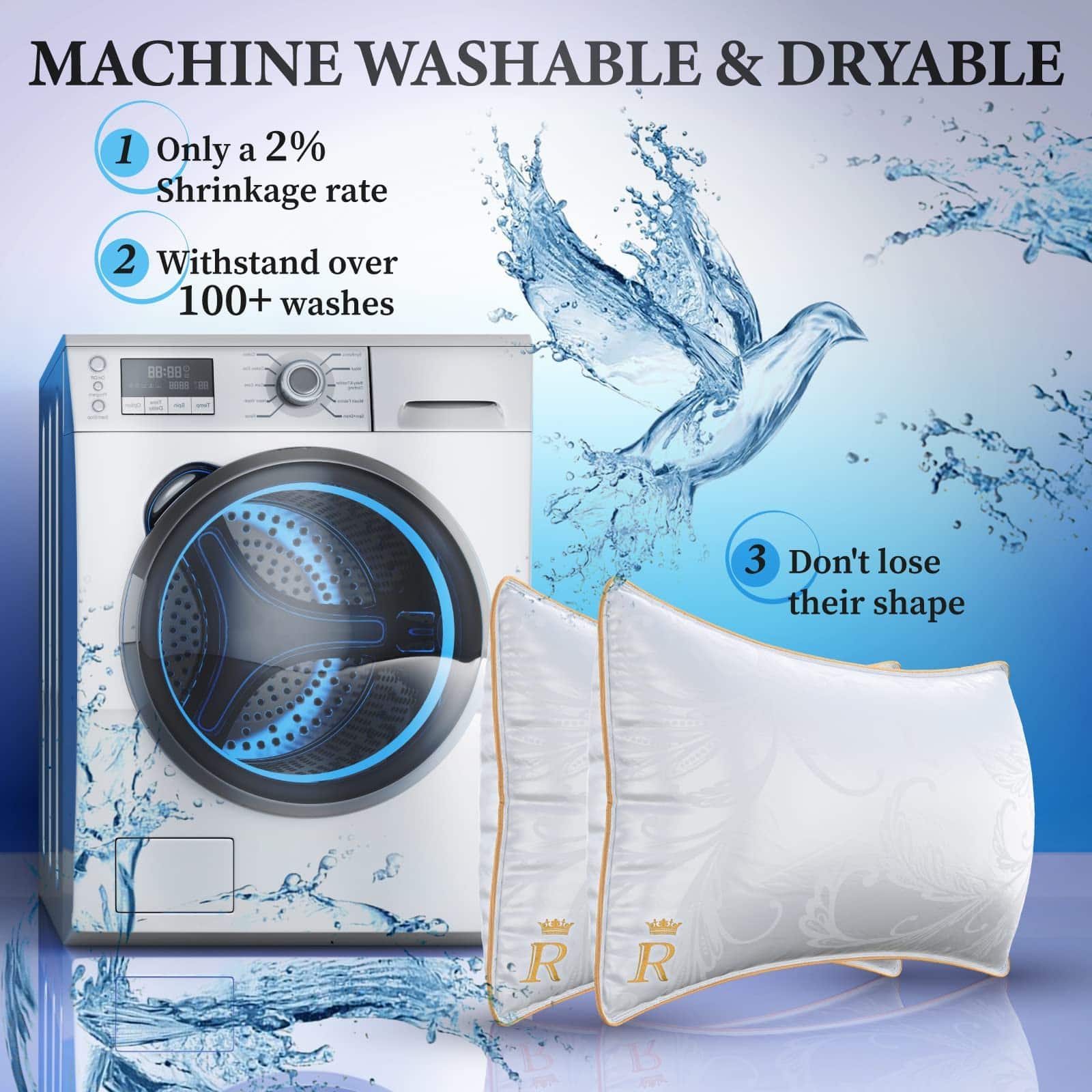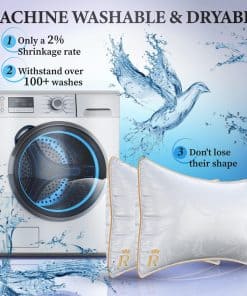 2. Hipoalergénico y Lavable: Nuestras almohadas king size son hipoalergénicas y seguras para todo tipo de durmientes. Además, son completamente lavables a máquina y secables, lo que las hace fáciles de mantener y frescas para cada uso.