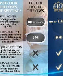 5. Cada almohada king size tiene un cierre de cremallera único que te permite ajustar la cantidad de relleno interior según tu elección de dormir. Al quitar parte del relleno, la almohada firme puede ajustarse al equilibrio perfecto de altura y firmeza (fina o completa) para adaptarse a las preferencias individuales. Algo de lo que no todas las marcas de almohadas de hotel pueden presumir