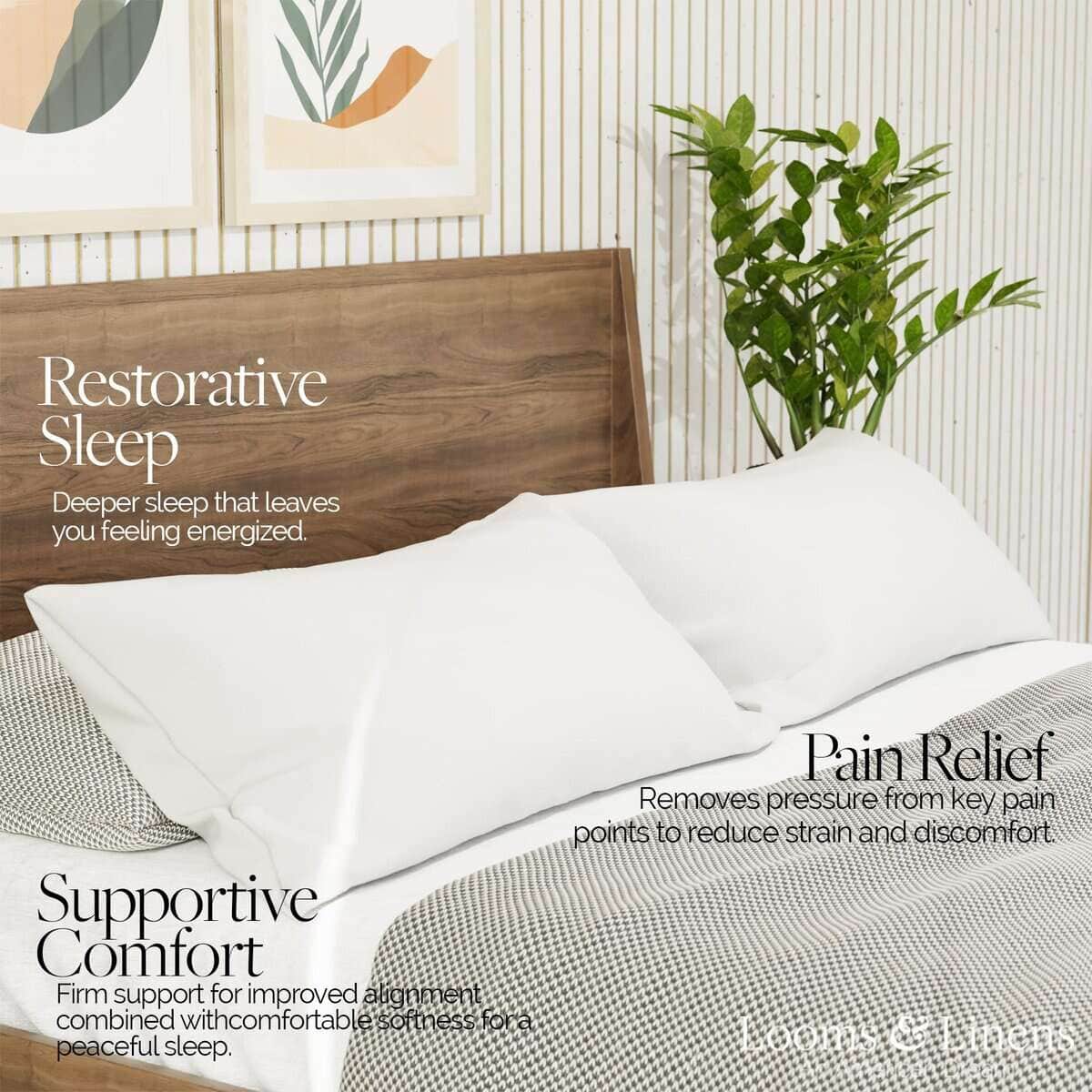 1. Almohada hecha en Estados Unidos: Nuestras almohadas premium hipoalergénicas para dormir 20 x 30 pulgadas se harán por encargo para garantizar una frescura esponjosa al llegar. Sin almohadas pre-hechas almacenadas en almacenes aquí. 2. Almohadas para cama cosidas a mano: Almohada hecha en EEUU, nos enorgullece ofrecerle una excelente calidad y una meticulosa artesanía, asegurando que cada almohada cumpla con estándares excepcionales. 3. Almohadas para Reina de Comodidad Suprema Pack de 2 Hechas en EEUU: Generosamente rellenas con un relleno de fibra de poliéster suave y cubiertas con una tela de poliéster y algodón suave y transpirable, nuestras lujosas almohadas para dormir. 4. Almohada de lateral restaurativa profunda: La mezcla perfecta de almohadas suaves y firmes para dormir que ofrecerán un soporte relajante en cualquier posición para dormir, ayudándote a conciliar el sueño más rápido. 5. Insertos de almohada lavables con conveniencia y almohadas secadoras amigables para dormir, que conservarán su suavidad después de innumerables ciclos de lavado y no perderán su forma como muchas almohadas similares.