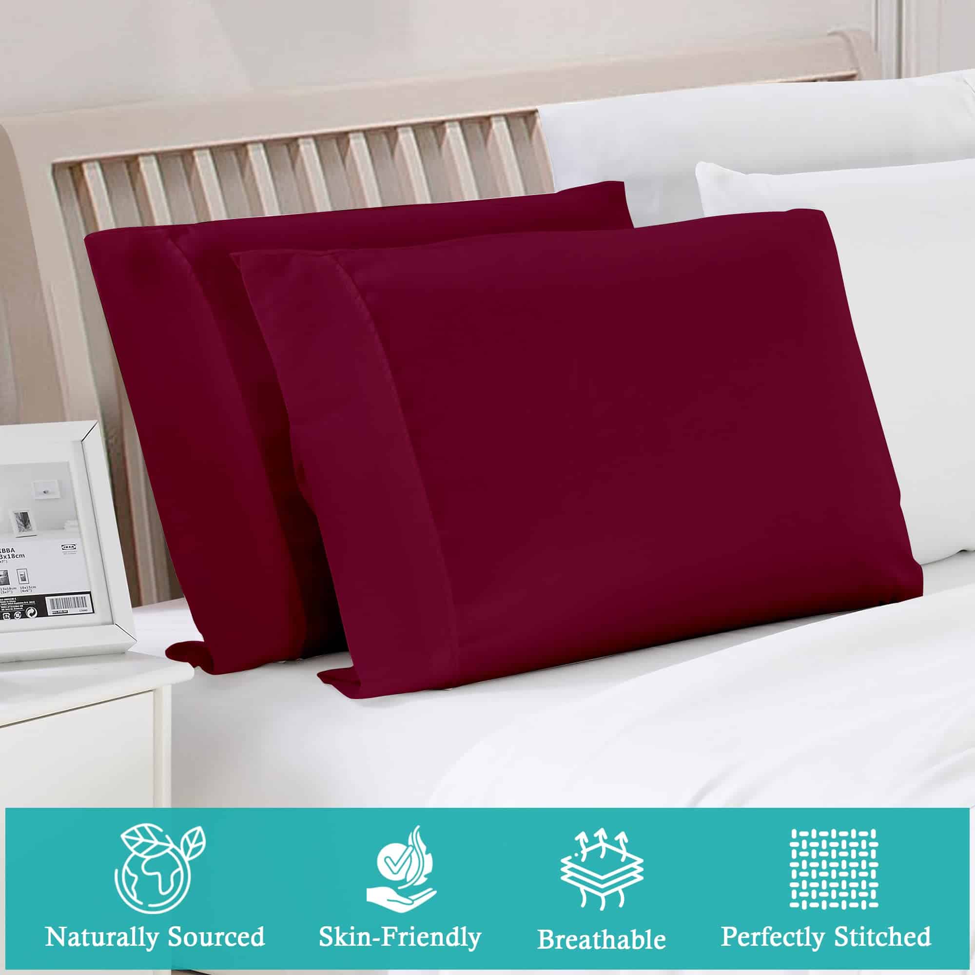 Set de 2 Fundas de Almohada de 600 Hilos -Burdeos