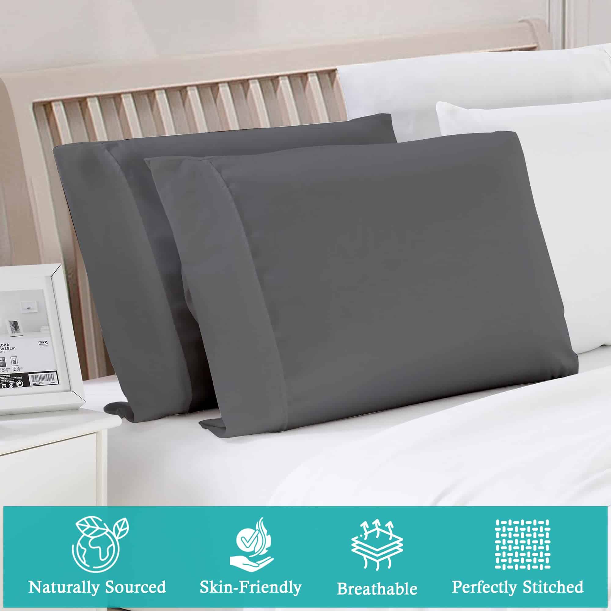 Este set de 2 fundas de almohada de la más alta calidad está hecho de 100% de Algodón Egipcio de Fibra Larga que garantiza durabilidad y suavidad a lo largo del tiempo. La tela transpirable ofrece comodidad y frescura para todas las estaciones y es resistente a la decoloración. La artesanía impecable y el acabado suave como la seda te harán sentir como si estuvieras durmiendo en sábanas de hotel de lujo. Las fundas de almohada para cama Queen vienen en una variedad de colores para que puedas elegir el que mejor se adapte a tu estilo y decoración. Fáciles de cuidar y mantener, estas fundas de almohada son un regalo perfecto para cualquier ocasión. Sorprende a tus seres queridos con este set de fundas de almohada de calidad y estilo inigualables.