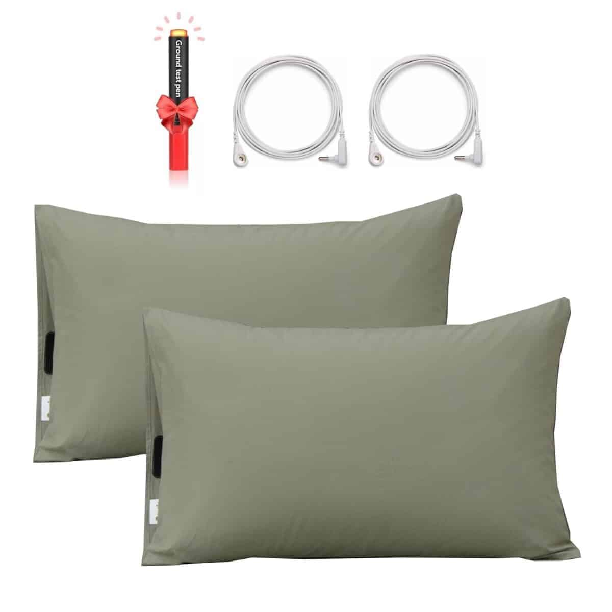 Nuestra funda de almohada de puesta a tierra está hecha de algodón orgánico certificado con 5% de hilo de plata altamente conductivo, tejido suavemente en la tela. Esto brinda la mejor conductividad sin afectar la sensación del algodón orgánico puro disminuyendo su comodidad para dormir. La investigación publicada sobre la Puesta a Tierra indica una amplia gama de resultados favorables relacionados con la salud que incluyen: Mejor sueño; Reducción de la inflamación y el dolor; Mejora del flujo sanguíneo; Efecto normalizador sobre la hormona del estrés cortisol; Efectos calmantes en el sistema nervioso, y mucho más. La funda de almohada se conecta a la Tierra con un cordón de tierra (16 pies, 5m). Un extremo del cable de puesta a tierra se conecta a la funda de almohada y el otro extremo se conecta a un tomacorriente eléctrico o a la varilla de puesta a tierra (no incluida). Y puede usar el bolígrafo de prueba de tierra para verificar su funda de almohada de puesta a tierra. Instrucciones de lavado – Como cualquier otra funda de almohada, debe lavar la funda de almohada de puesta a tierra regularmente sin afectar la funcionalidad. El lavado elimina las grasas aislantes y los ácidos corporales que pueden reducir la conductividad del hilo de plata en la funda de almohada con el tiempo. No use lejía ni suavizantes de telas, así su funda de almohada de puesta a tierra durará años como cualquier otra funda de almohada regular.
