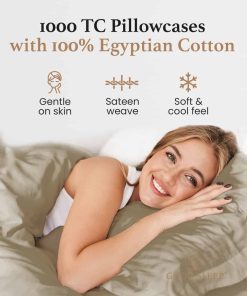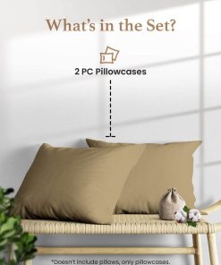 Set de 2 Fundas de Almohada King Taupe 1000 TC en Algodón