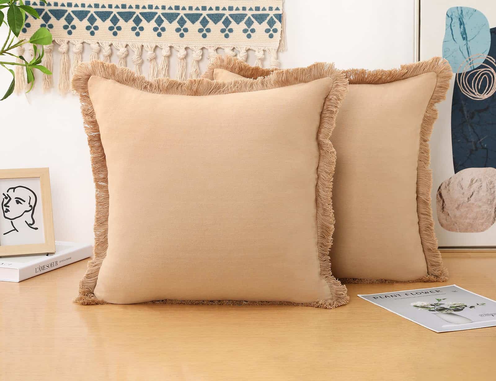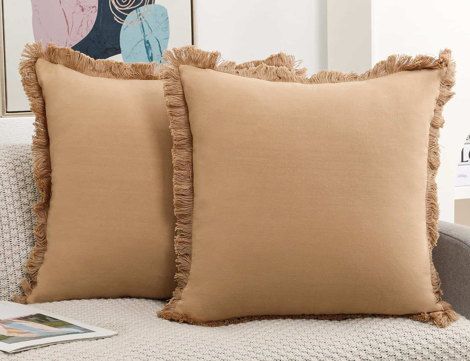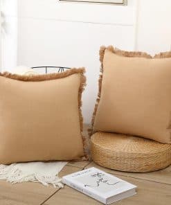 Este set de 2 fundas de cojín está elaborado con materiales naturales, con un 80% de lino Ramie y un 20% de algodón, lo que las hace transpirables y cómodas durante todo el año. El diseño estético de estas fundas incluye un fleco de 1 pulgada alrededor de su borde, aportando un toque único que combina a la perfección con decoraciones de estilo boho, granja, étnicas, retro y chic. La mano de obra de estas fundas es impecable, con una cremallera invisible del mismo color que la funda para facilitar su extracción. Cada costura está reforzada para garantizar su durabilidad. Estas fundas son el regalo ideal para cualquier ocasión, siendo perfectas para dar como regalo a padres, novias, familiares o abuelas. El paquete incluye 2 fundas de almohada sin relleno en tamaño 65 x 65 cm. Garantizamos tu satisfacción al 100% con la calidad de nuestras fundas de cojín.