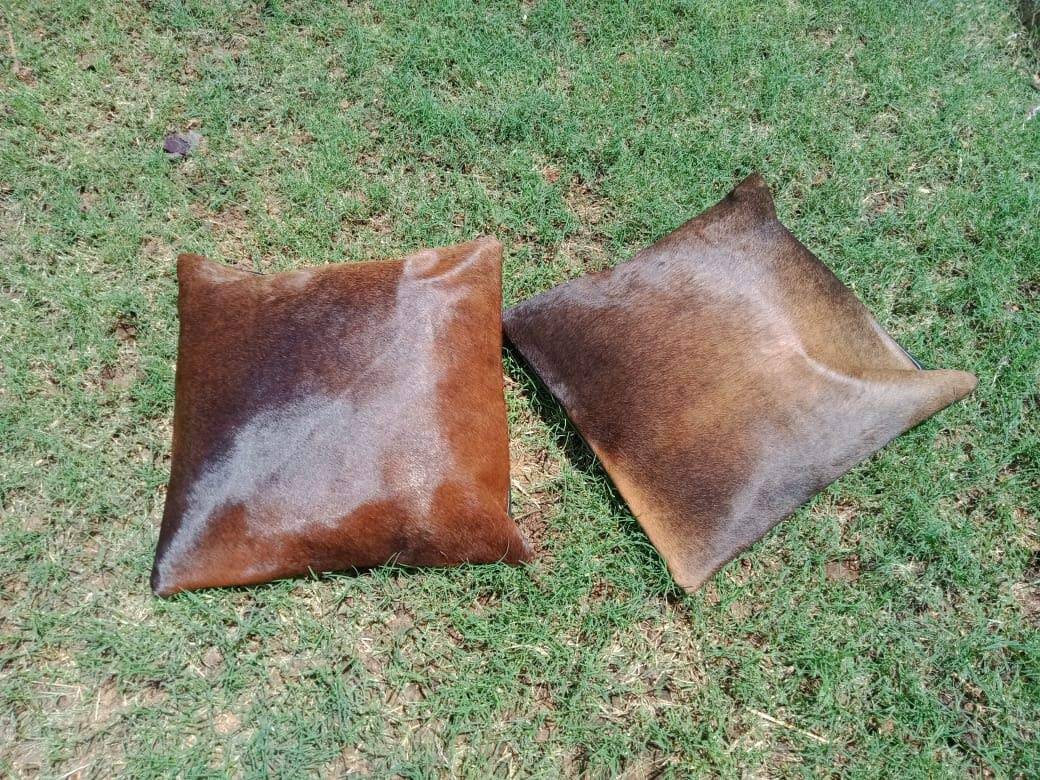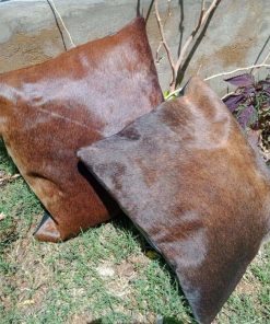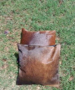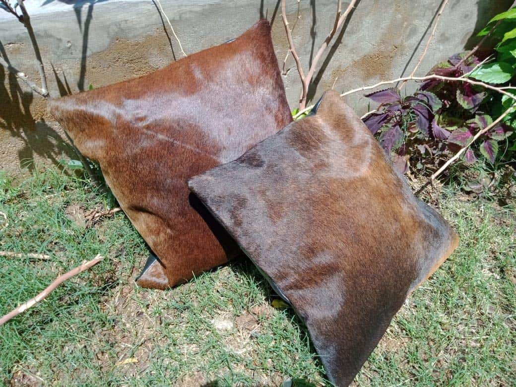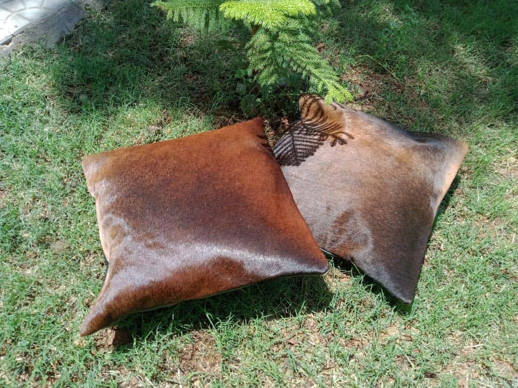 Set de 2 Fundas de Cojín de Piel de Vaca Negra Natural |