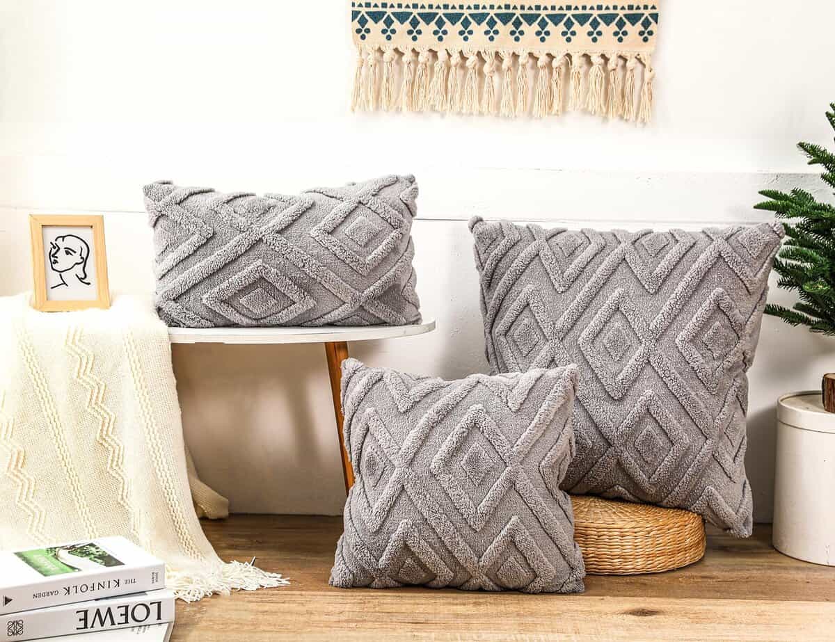 2. Decoración: El clásico patrón a cuadros le da un estilo europeo minimalista. Esta funda de almohada neutral combina bien con la decoración bohemia de granja, mediados del siglo, retro y chic.