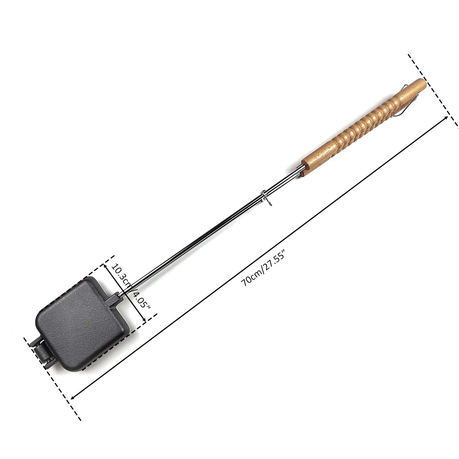 El molde para hamburguesas cuadrado de HAWOK le permite cocinar deliciosas hamburguesas sobre la hoguera. Proporciona suficiente área de cocción para una sola hamburguesa, es de doble cara y se puede voltear libremente para que ambos lados se calienten de manera uniforme. Los mangos extra largos le permiten asar sus hamburguesas con comodidad lejos de las llamas de su hoguera. Un gancho mantiene la tapa cerrada de manera segura mientras cocina para sellar los sabores y proteger su comida. Las varillas de acero inoxidable y los mangos de madera lo mantienen alejado de manera segura del fuego. El molde para hamburguesas cuadrado está precocido y listo para usar. Es el regalo perfecto de utensilios de cocina para vecinos, familiares, amigos, cocineros o chefs. Recibirá dos juegos de cocineros de campamento.