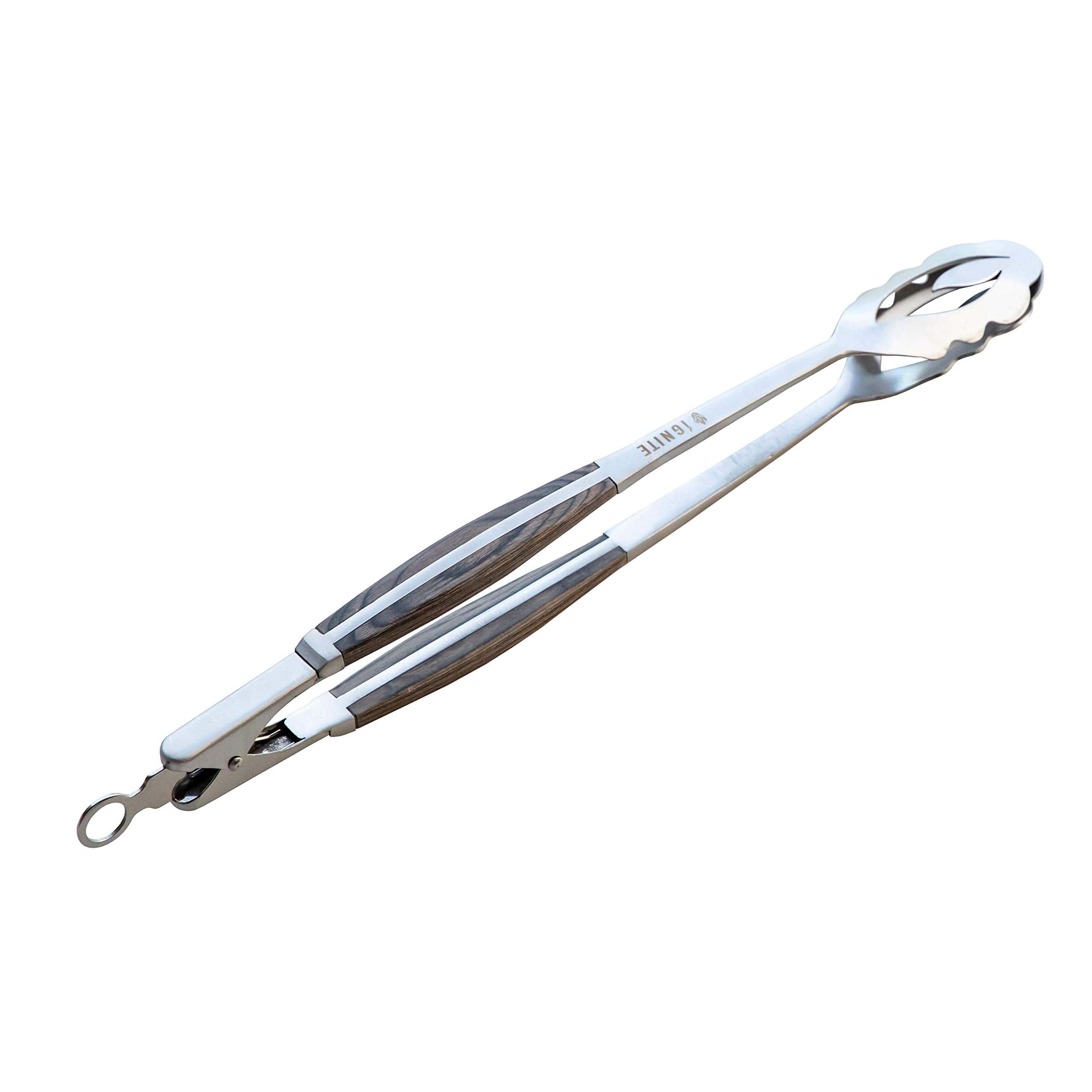 Nuestras pinzas y espátulas tienen una construcción de un solo cuerpo con acero inoxidable grueso. La espátula es lo suficientemente resistente como para que puedas voltear enormes hamburguesas con confianza. El diseño de nuestras herramientas te hará querer dejarlas a la vista para que tus invitados puedan admirarlas. Las pinzas se pueden cerrar con llave y tienen una sensación sorprendentemente sustancial. Finalmente, cada herramienta viene con un lazo para un almacenamiento fácil.