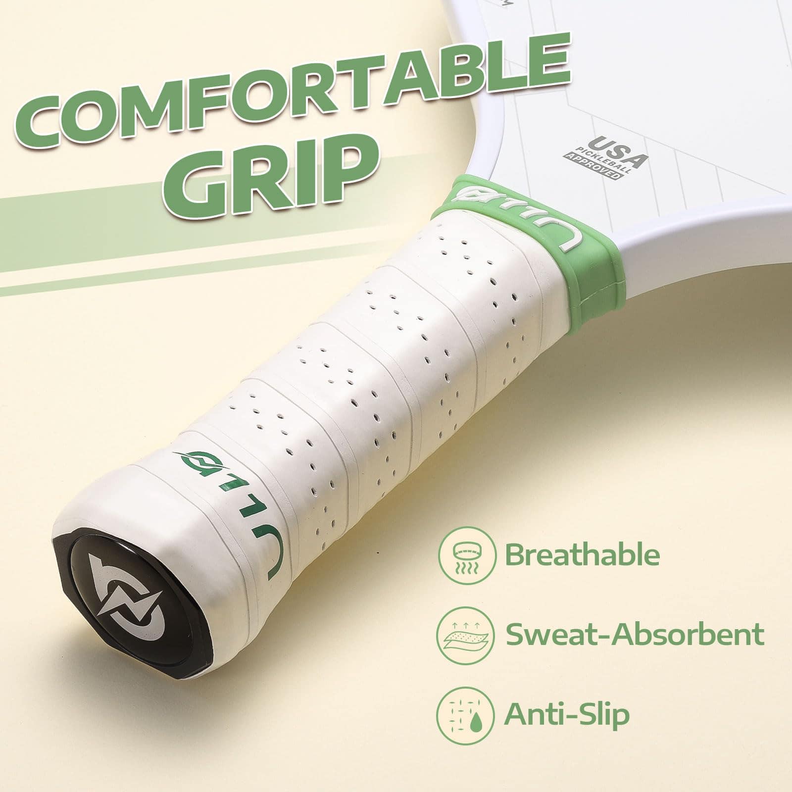 3. Agarre Cómodo para un Buen Rendimiento: Nuestras palas están equipadas con un agarre absorbente al sudor. El agarre es antideslizante y el diseño ergonómico garantiza un confort máximo y una mayor durabilidad, permitiéndote jugar más tiempo sin comprometer el agarre.