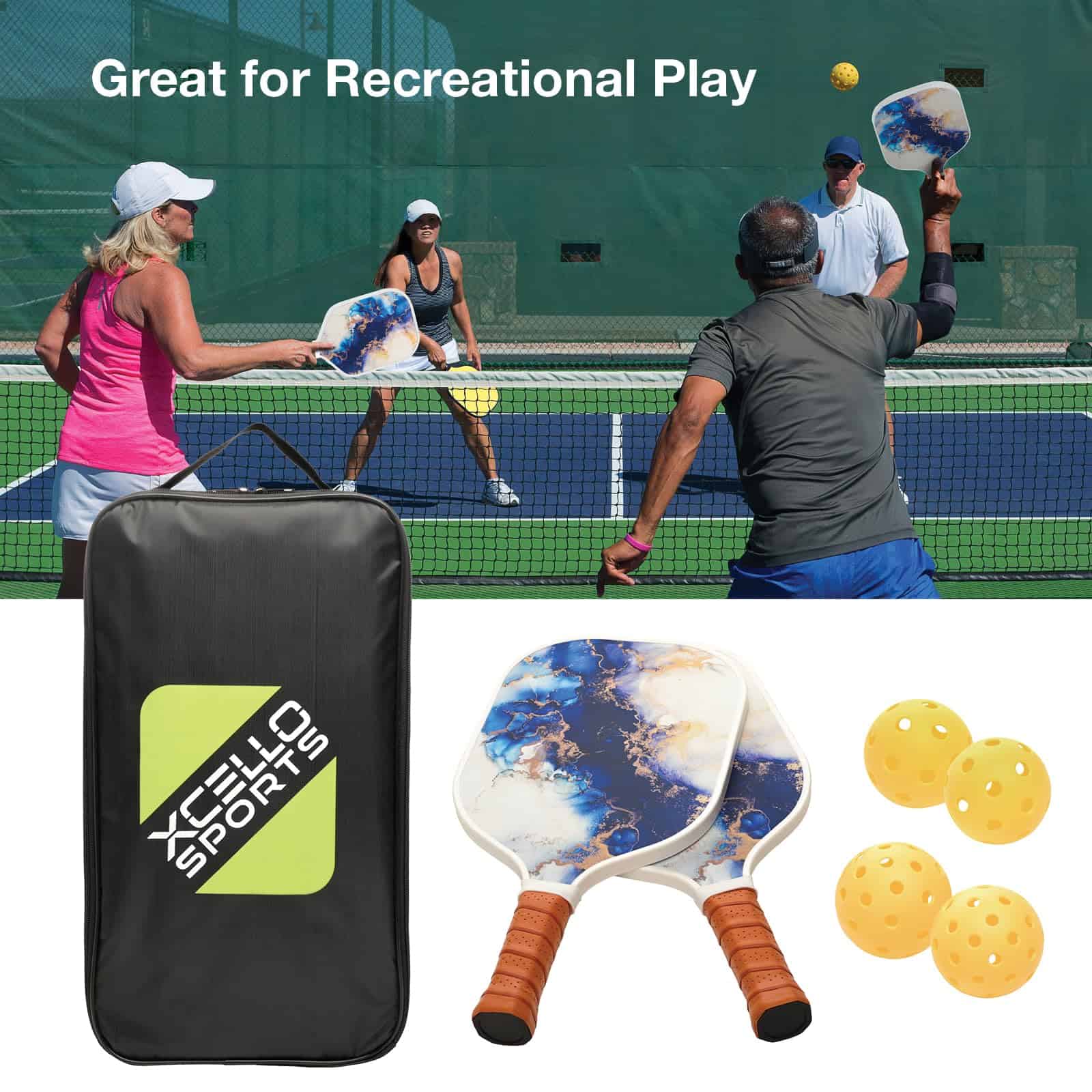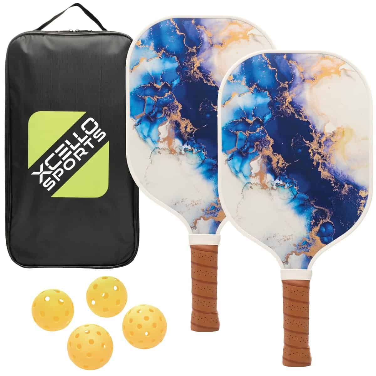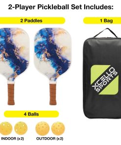 Prepárate para la diversión interminable y el juego competitivo con el Set de Palas de Pickleball de Fibra de Vidrio Xcello Sports. Este set es perfecto tanto para principiantes como para jugadores experimentados que buscan equipos de alta calidad que ofrezcan un rendimiento excepcional. Cada set incluye dos palas de pickleball de fibra de vidrio duraderas diseñadas para resistir el juego intenso, cuatro pelotas de pickleball amarillas brillantes (dos para uso en interiores y dos para uso en exteriores), y un práctico estuche para un fácil almacenamiento y transporte. Las palas cuentan con un agarre acolchado, garantizando comodidad y control durante cada partido. Disponible en cuatro estilos vibrantes – Rayas Retro, Nudo de Corbata Arcoíris, Mármol Azul y Degradado Azul/Púrpura – este set aporta funcionalidad y estilo a la cancha. Ya sea que estés jugando en tu patio trasero, en una cancha local o de vacaciones, el Set de Palas de Pickleball de Fibra de Vidrio Xcello Sports es tu elección para el juego recreativo.