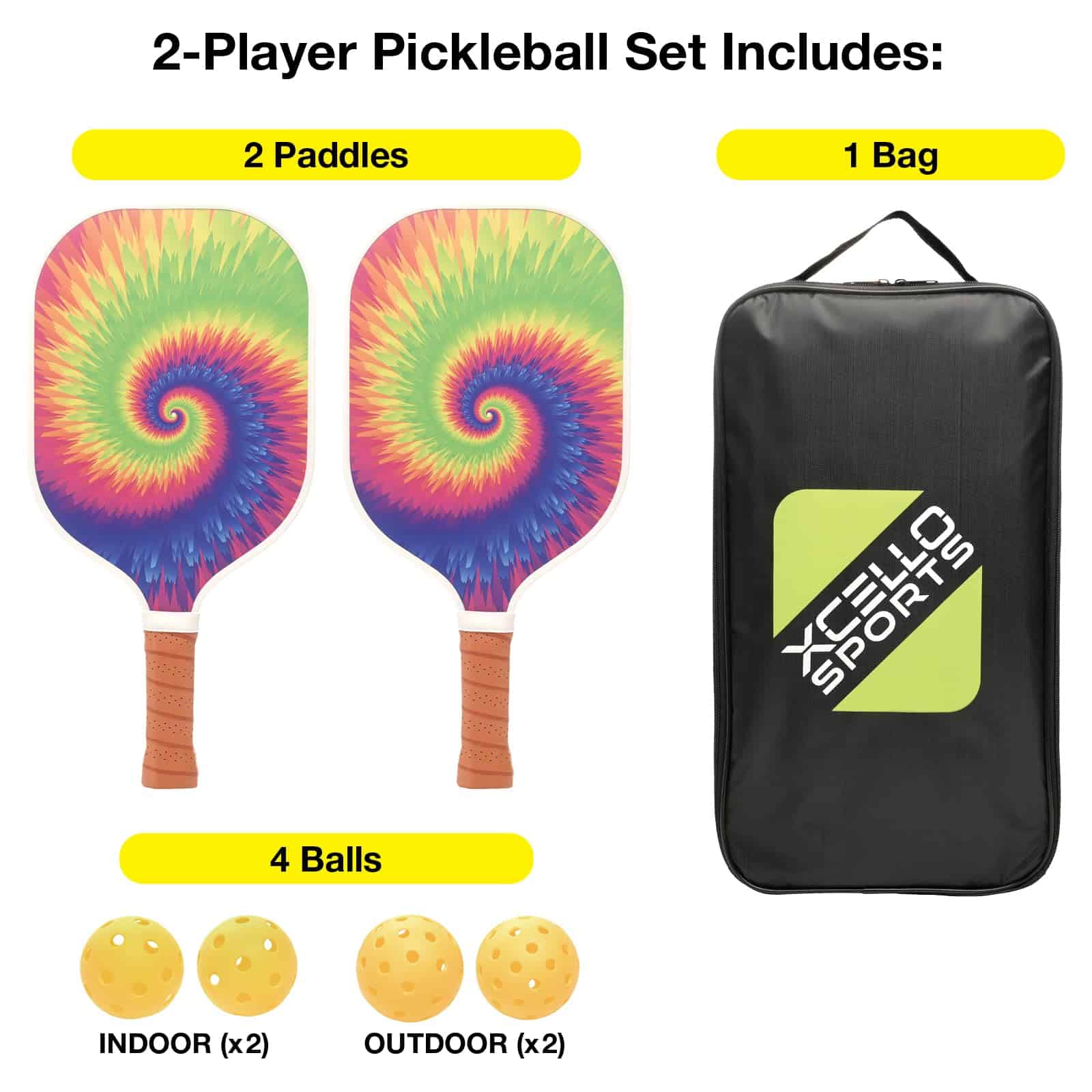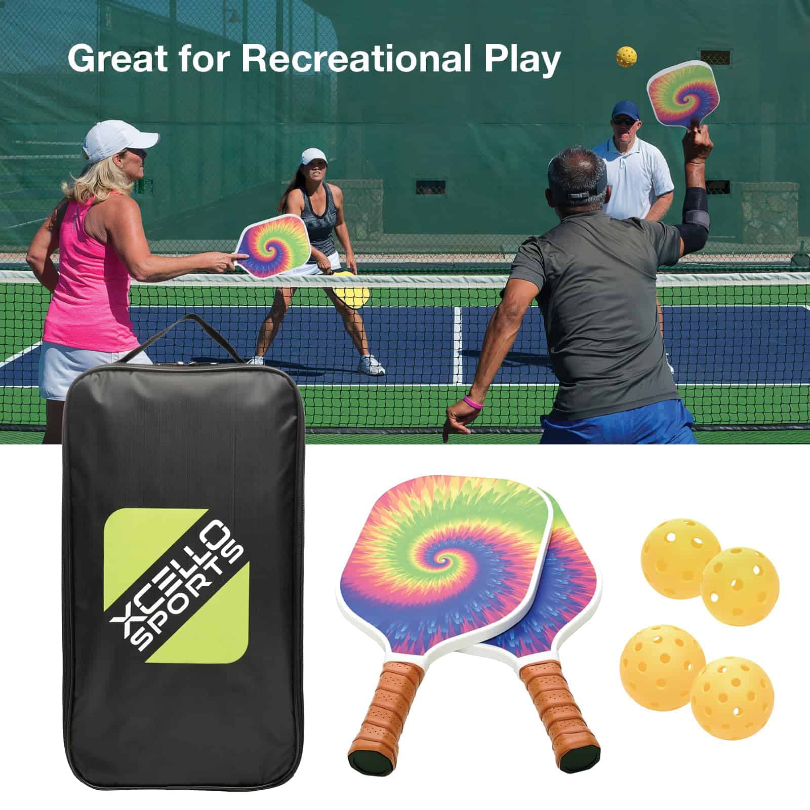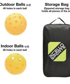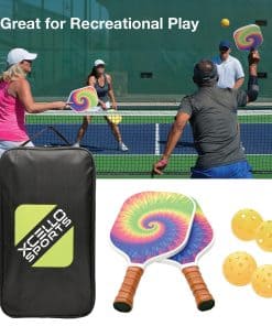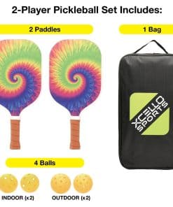 Prepárate para la diversión interminable y el juego competitivo con el Set de Palas de Pickleball de Fibra de Vidrio Xcello Sports. Este set es perfecto tanto para principiantes como para jugadores experimentados que buscan un equipo de alta calidad que brinde un rendimiento excepcional. Cada set incluye dos palas de pickleball de fibra de vidrio duraderas diseñadas para resistir el juego intenso, cuatro pelotas de pickleball amarillas brillantes (dos para uso interior y dos para uso exterior) y un práctico estuche para un fácil almacenamiento y transporte. Las palas cuentan con un agarre acolchado, asegurando comodidad y control durante cada partido. Disponible en cuatro estilos vibrantes – Rayas Retro, Tie Dye Arcoíris, Mármol Azul y Degradado Azul/Púrpura – este set aporta funcionalidad y estilo a la cancha. Ya sea que estés jugando en tu jardín, en una cancha local o de vacaciones, el Set de Palas de Pickleball de Fibra de Vidrio Xcello Sports es tu elección ideal para el juego recreativo.