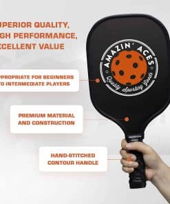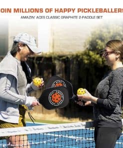 Este set de 2 paletas de pickleball de grafito de Amazin’ Aces es el kit de inicio perfecto para quienes quieren sumergirse en el emocionante mundo del pickleball. Con una construcción robusta y duradera, estas paletas de pickleball están diseñadas para soportar el juego intenso tanto en interiores como en exteriores. El diseño unisex para adultos garantiza que jugadores de todos los niveles puedan disfrutar de estas paletas de pickleball.