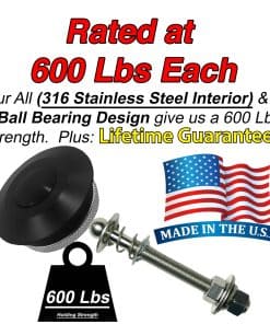 Nuestros sets de pasadores de capó se venden en pares de 2. Estos pasadores están mecanizados por CNC a partir de aluminio aeronáutico 6061. Viene completo tal como se ve en la imagen con espárragos de bola de acero inoxidable 316 de 3/8″-24 y resortes de elevación, tuercas, arandelas y arandelas de seguridad. Este pasador está calificado para 600 LBS cada uno en todos nuestros pasadores.