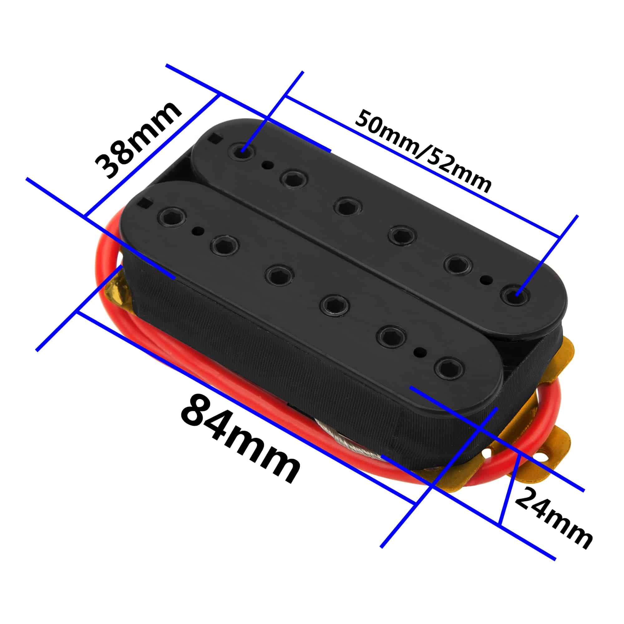 Estas pastillas de guitarra humbucker de cerámica con tornillos hexagonales son compatibles con la mayoría de las guitarras eléctricas de doble humbucker o similar. La pastilla humbucker de doble bobina con imanes de cerámica enrollados hasta 15k en el puente y 7.2k en el mástil, alta ganancia para estilos de metal punk, metal y heavy metal. Genial para Metal, Thrash y Punk. Las pastillas de guitarra eléctrica están hechas principalmente de metal, no se dañan fácilmente, cada pastilla incluye 2 tornillos y 2 resortes. Viene con tornillos de montaje y resortes, fácil de instalar y usar. Un gran reemplazo de doble bobina humbucker para tus guitarras. Material: Metal + ABS, Cerámica Especificaciones del producto: Espaciado de los agujeros de la pastilla de mástil: 50mm Espaciado de los agujeros de la pastilla de puente: 52mm Imán: Imanes de cerámica Color: Blanco/Negro/Rojo (Opcionales) Resistencia: Mástil 7.5k, Puente 15k Tamaño: 84 x 38 x 24mm (L x An x Al) Peso: 220g Contenido del paquete: 1Pastilla de Guitarra Eléctrica de Puente 1Pastilla de Guitarra Eléctrica de Mástil 4Tornillos de Montaje 4Muelles de Montaje Nota: 1. Si no estás satisfecho con el producto que recibiste, puedes enviarnos correos electrónicos en cualquier momento. Te responderemos al instante y te ayudaremos a resolver tu problema. 2. Debido a diferentes monitores, puede haber una pequeña diferencia de color.