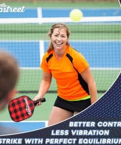 2. HECHO PROFESIONALMENTE: Este set de pickleball está hecho de núcleo de panal de polímero que proporciona más potencia y un excelente control de la pelota. Esta raqueta de pickleball sigue siendo una gran opción para aquellos que aprecian una raqueta de alta calidad. El tamaño de la raqueta es de 41.9×18.9.x2.8cm.