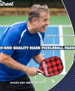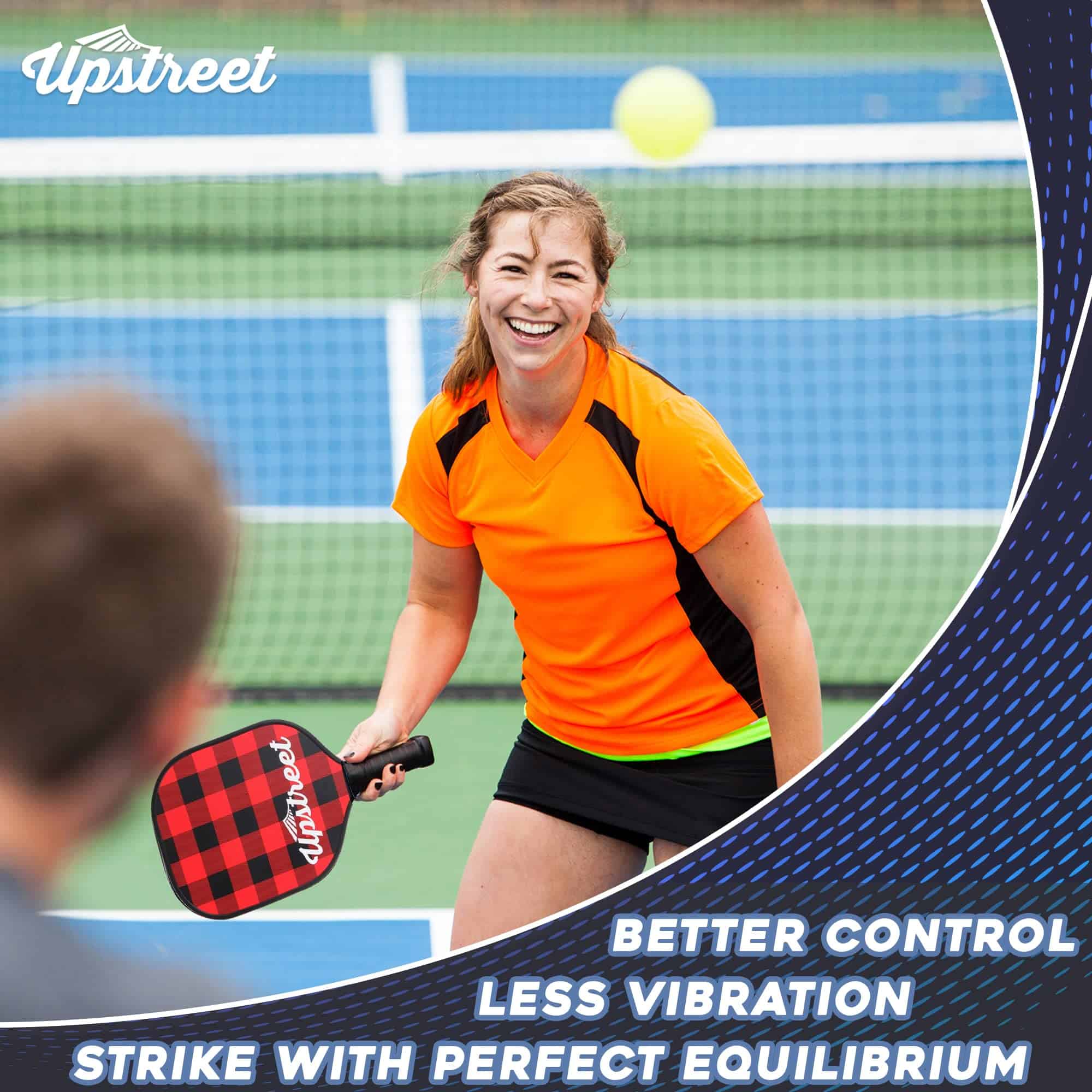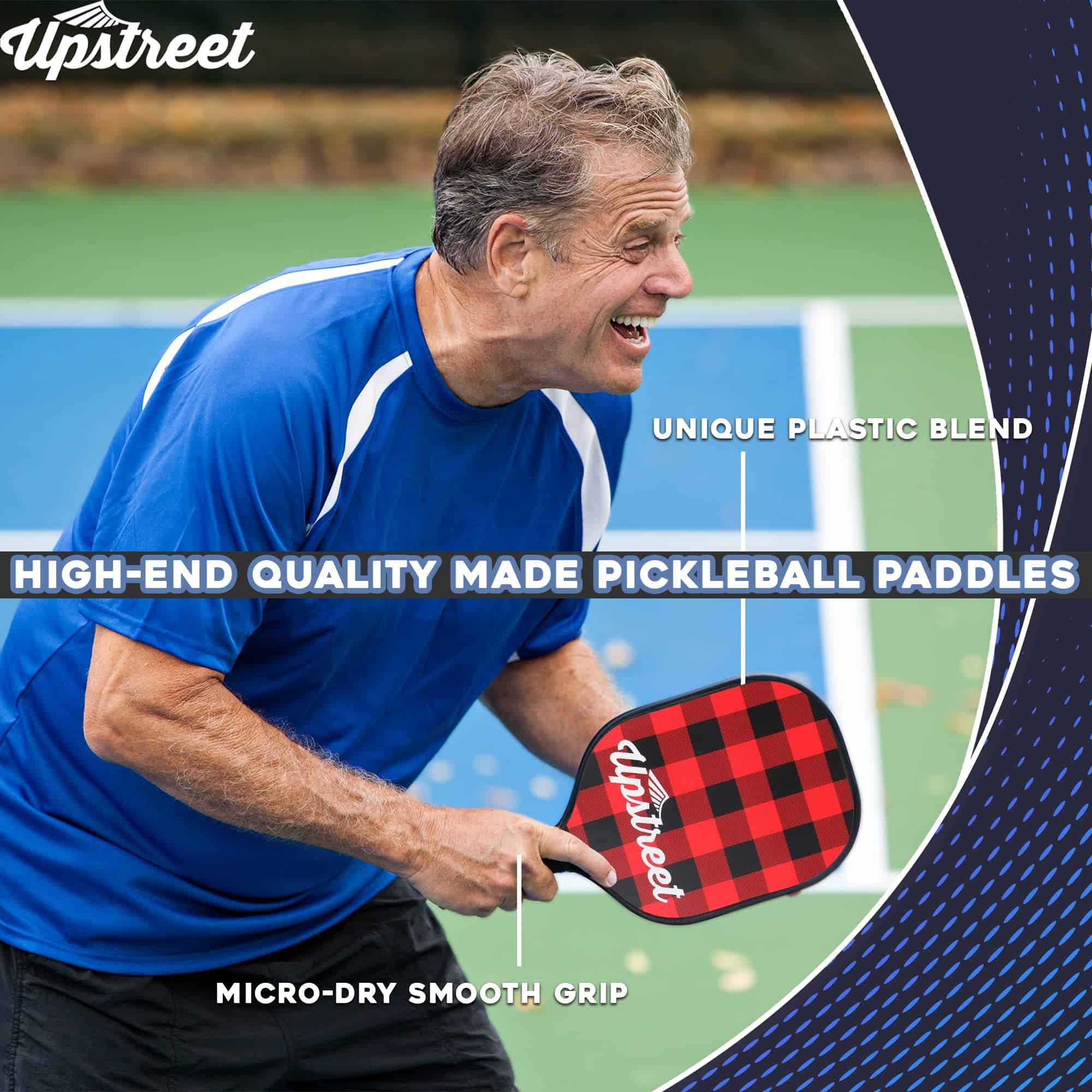 3. DISEÑO DE AGARRE ERGONÓMICO: La raqueta o set de pickleball de Upstreet está creado con un agarre acolchado de alta gama, muy cómodo de usar y absorbente del sudor. La longitud del mango de esta raqueta de pickleball para mujeres u hombres es de 4.75 pulgadas y la circunferencia del agarre es de 4.25 pulgadas, ideal para manos de tamaño promedio.