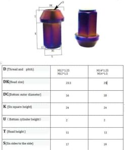 Paquete: 20 X Tuercas de Titanio, 1 X Llave
