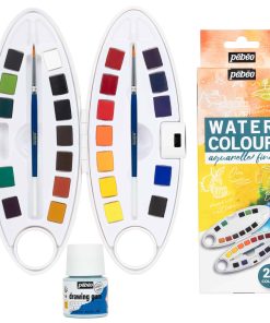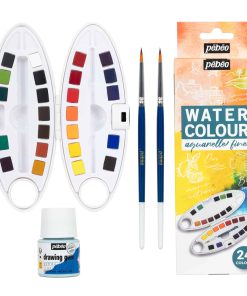 Set de 24 medios estuches de acuarelas Pebeo con goma de
