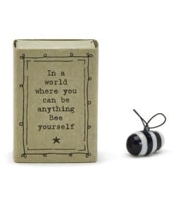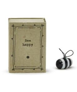 Estas encantadoras, pequeñas y dulces esculturas de abejas felices de porcelana fueron diseñadas en el Reino Unido por East of India. Son magníficos recuerdos para mostrar a amigos y familiares cuánto significan para usted. Cada uno empaquetado dentro de su propia caja de fósforos con un mensaje conmovedor en el frente.