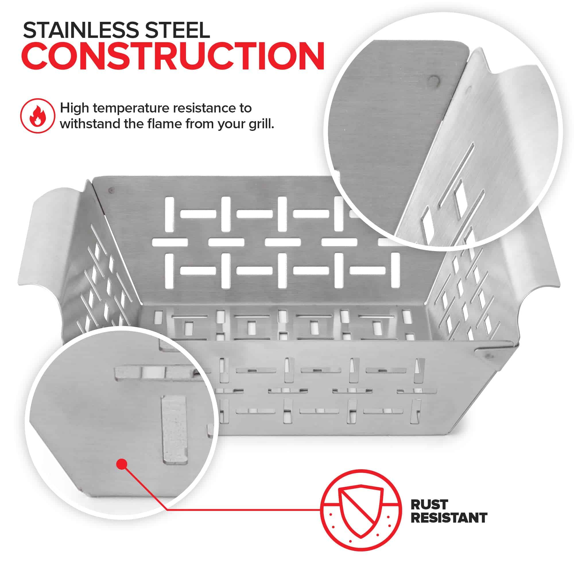 2. Diseño resistente: Construcción resistente de acero inoxidable con una resistencia superior a la temperatura para soportar las llamas de su parrilla. Resistente al óxido y diseñado para durar.
