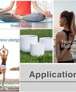 Los cuencos de cuarzo RYAN DVAN promueven la relajación, concentración y equilibrio durante la meditación, yoga y sanación de chakras. Las vibraciones producidas por los cuencos pueden equilibrar y limpiar cualquier bloqueo o desequilibrio en los centros de energía del cuerpo. El sonido y las vibraciones también pueden estimular el cerebro, promoviendo la creatividad y la inspiración, lo que los hace populares entre los profesionales creativos. Los cuencos pueden ser una herramienta poderosa para mejorar su práctica espiritual y traer una sensación de calma y paz a su vida.