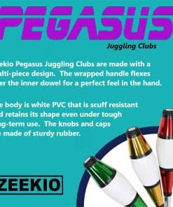 Esta es nuestra maza más vendida. Las Mazas Zeekio Pegasus te brindan toda la calidad y sensación de las mazas de alto precio pero a un precio que no te hará temer dejarlas caer. Con una forma tradicional, las Mazas Pegasus están hechas con un diseño de varias piezas, incluyendo un mango envuelto que se flexiona sobre el eje interno para una aterrizaje suave y una sensación perfecta en tu mano. El cuerpo es de PVC blanco que es resistente a los raspones y conserva su forma incluso en un uso prolongado y exigente. El Pegasus tiene una perilla negra resistente de goma y tapa de base de goma. Especificaciones: