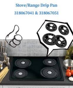 El set de bandejas de goteo de porcelana negra APPLIANCEMATES es ideal para atrapar derrames de utensilios de cocina en quemadores de superficie. Las bandejas 318067041 & 318067051 son duraderas y de alta calidad, cumpliendo con los estándares OEM. Reemplaza directamente a múltiples números de pieza. Es tiempo de reemplazar las bandejas de goteo del quemador cuando se oxidan. ¡Obtén tu set de reemplazo ahora y vuelve a disfrutar de tu cocina!