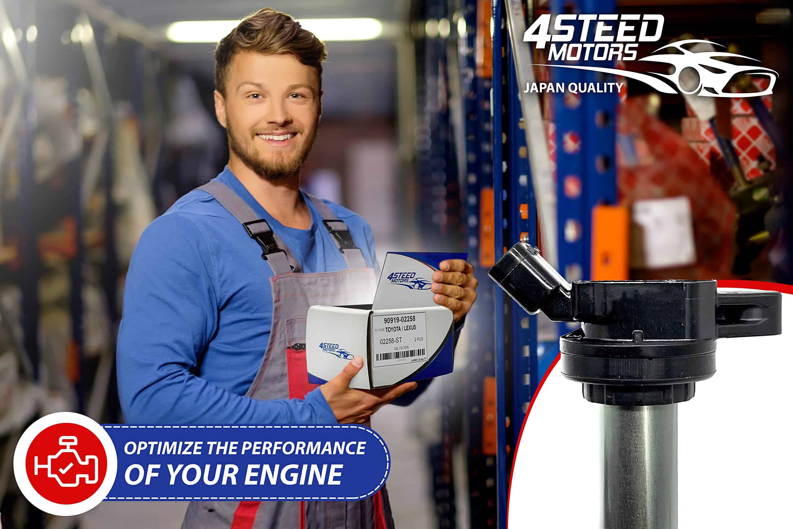 Paquete Incluye: 4 piezas de bobinas de encendido 4STEED MOTORS y 4 piezas de bujías OEM.