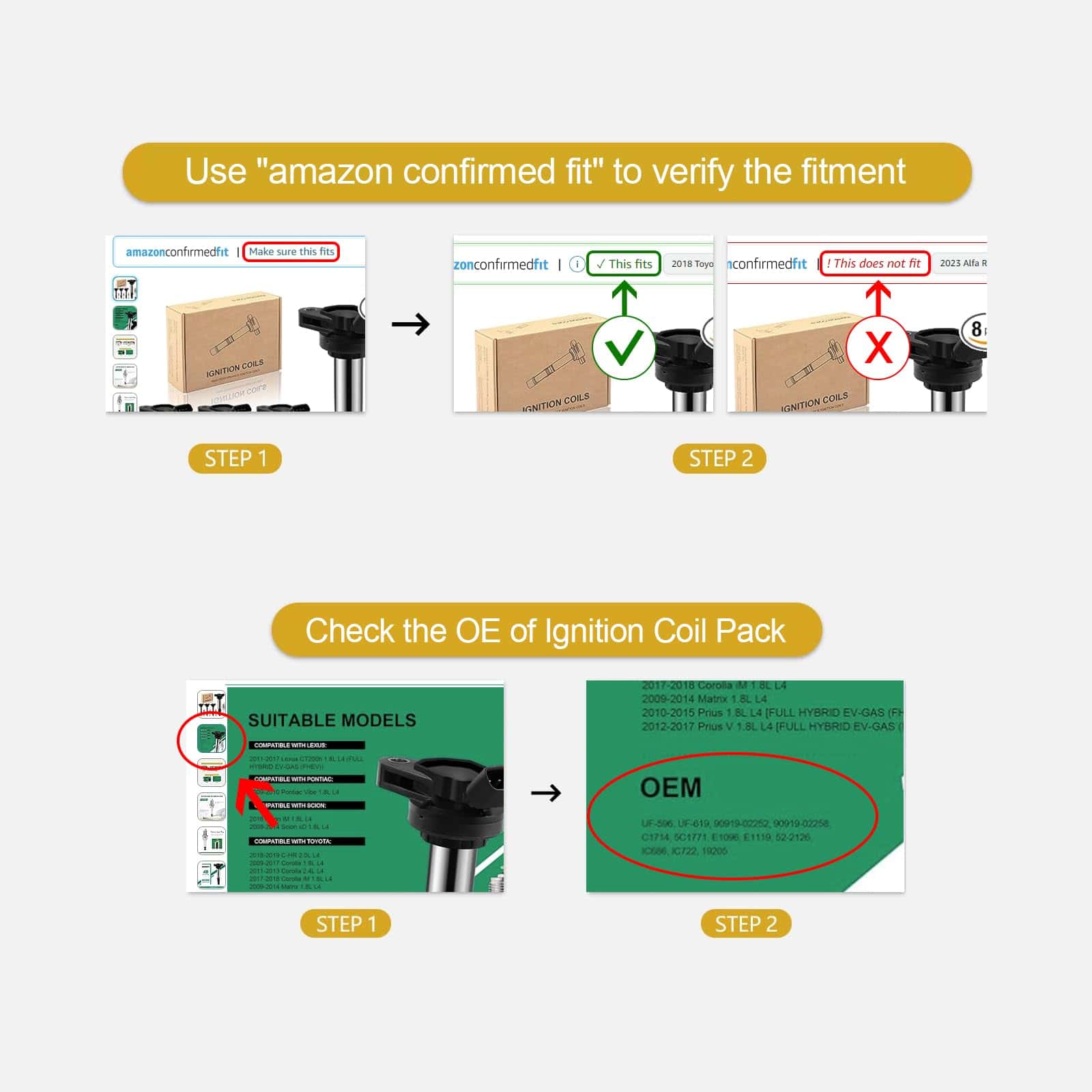2. NÚMERO DE PARTE DEL COCHE COMPATIBLE Número OE de las bobinas: UF596, C-696, 90919-02258, C1714, C1738 Número OE de la bujía: 93501.