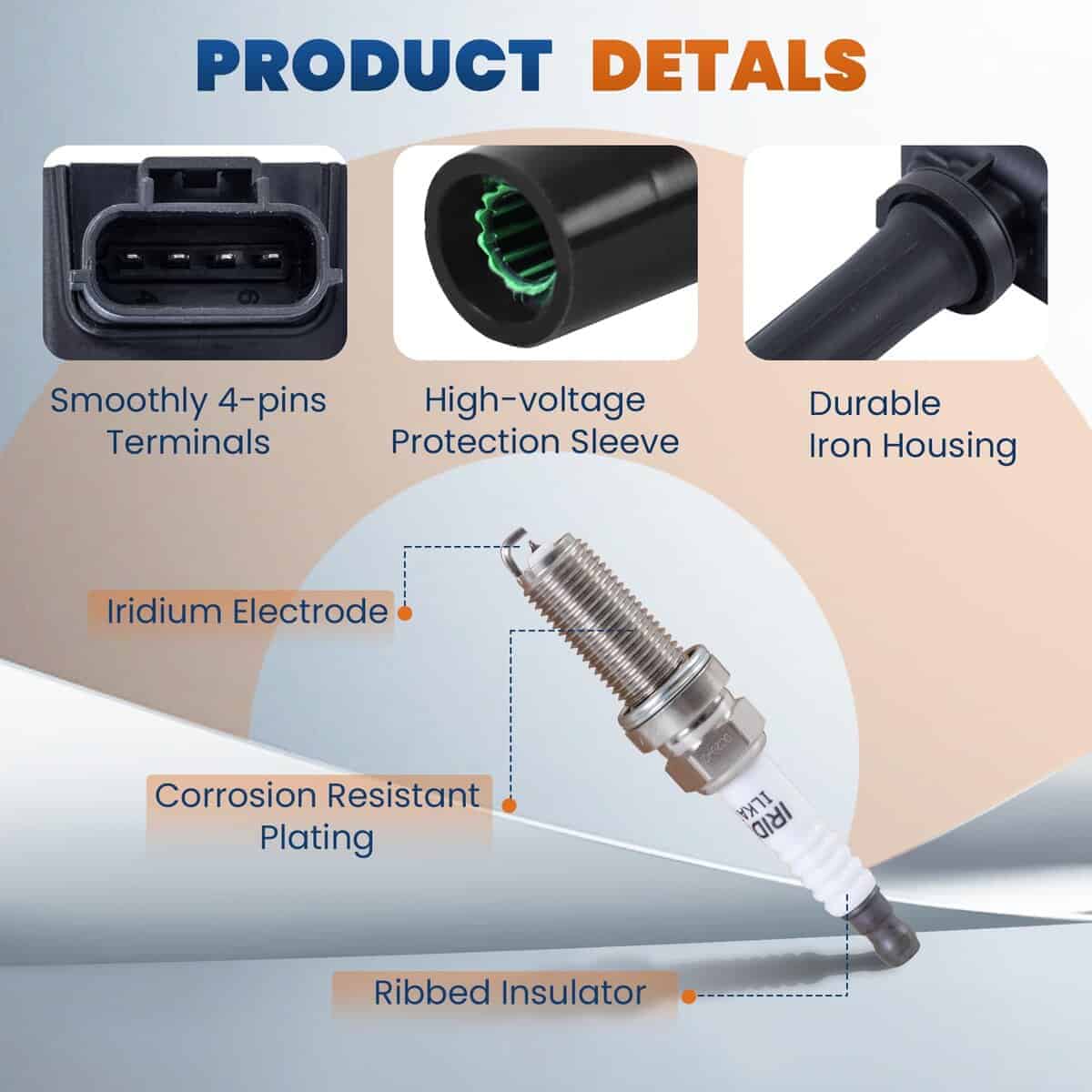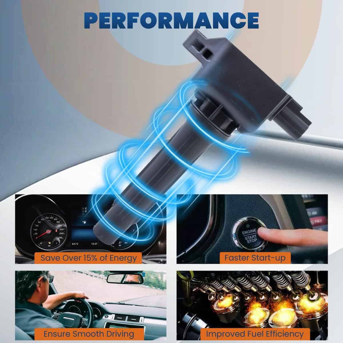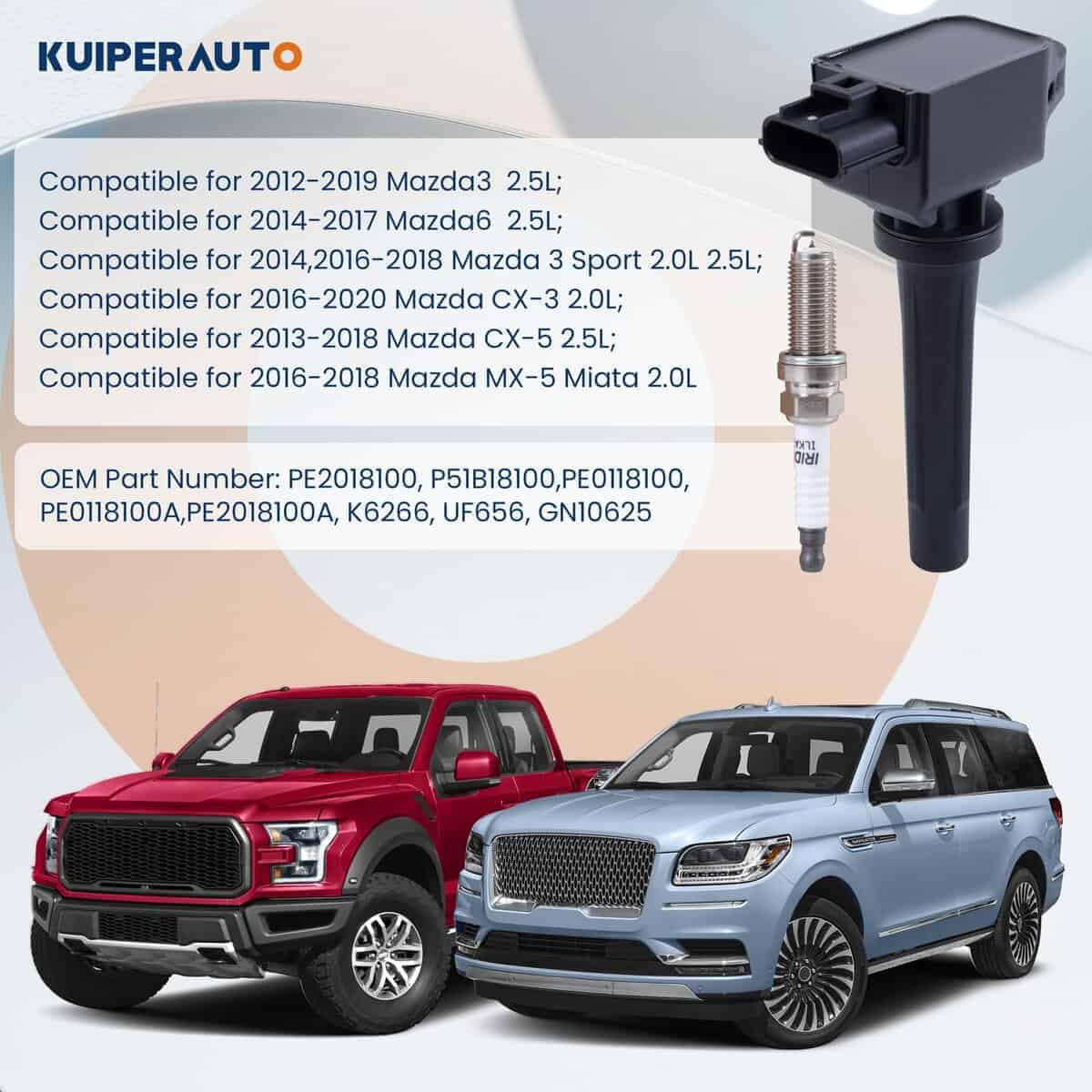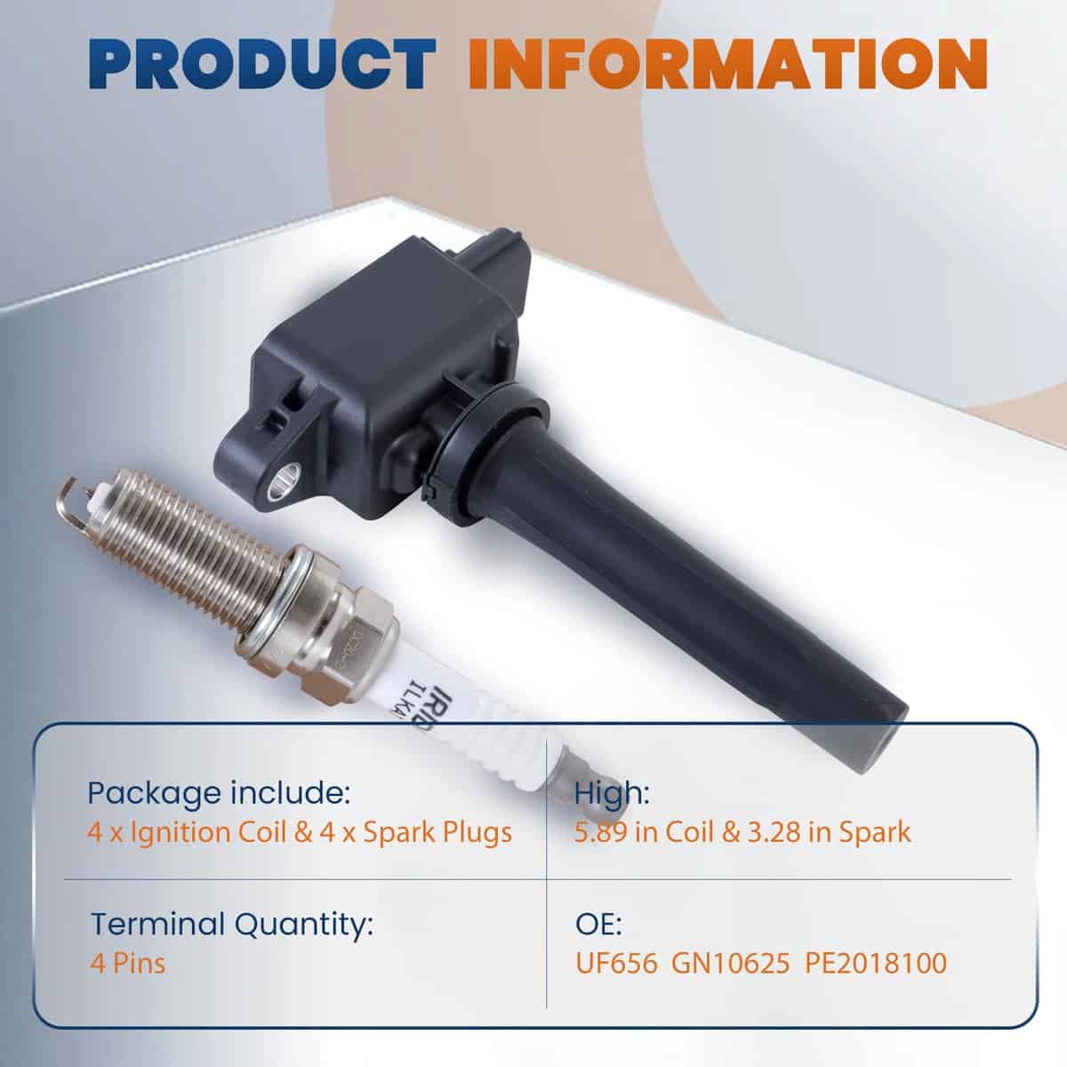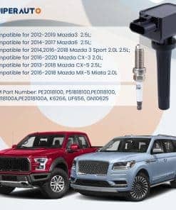 Conjunto de 4 bobinas de encendido y bujías compatibles con varios modelos de Mazda. Las bobinas cuentan con una excelente calidad en su fabricación, brindando un rendimiento óptimo en el encendido del motor. Con una mayor energía que las bobinas originales, estas bobinas mejoran la velocidad de arranque y el funcionamiento suave del motor. La vida útil de las bobinas se ve prolongada gracias al uso de resina epoxi, resistente a altas temperaturas y corrosión. Además, su diseño permite que funcionen de manera estable en un rango de temperatura amplio y en condiciones extremas de la carretera, brindando una experiencia de conducción segura y eficiente. Fáciles de instalar, estas bobinas de encendido cumplen con las especificaciones estándar de fábrica, garantizando una instalación rápida y sencilla.