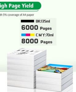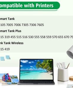 Set de 4 botellas de tinta de reemplazo compatible con impresoras HP Smart Tank 7301 6001 7001 7602 5000 5101 450 455 457 517 532 502 514, impresoras DeskJet GT-5810 GT-5820 GT-5822, impresoras Smart Tank Plus 551 555 557 559 655 617 570 571 651, impresoras Ink Tank 310 319 410 415 416 418 419, entre otras. Cada botella de tinta cuenta con una capacidad extra grande: la negra 32XL (135ml) imprime aproximadamente 6000 páginas, mientras que las botellas cian/magenta/amarilla 31 (70ml) imprimen aproximadamente 8000 páginas (con cobertura del 5% en papel A4). La tinta premium de FANSHENG garantiza una calidad de impresión excepcional, produciendo documentos, fotos y gráficos nítidos y vibrantes. Todos los cartuchos de tinta están fabricados por una fábrica certificada ISO 9001, ISO 14001, CE y ROHS, con garantía de dos años y soporte técnico las 24 horas. No compatible con sublimación.