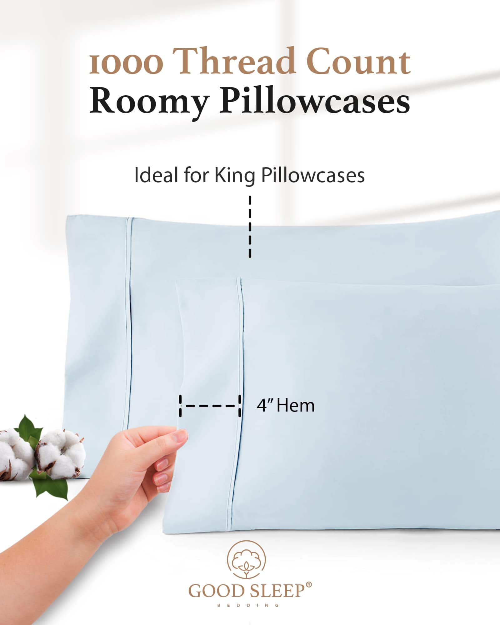 1000 TC Light Blue King Pillowcases Set of 4 100% Egyptian Cotton Pillow Cases with Long Staple Cotton & Sateen Weave, Silky Soft Hotel – Like Bed Pillow Covers for Comfy Sleeping, Snug Fit