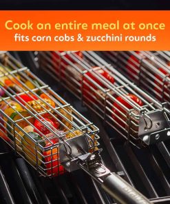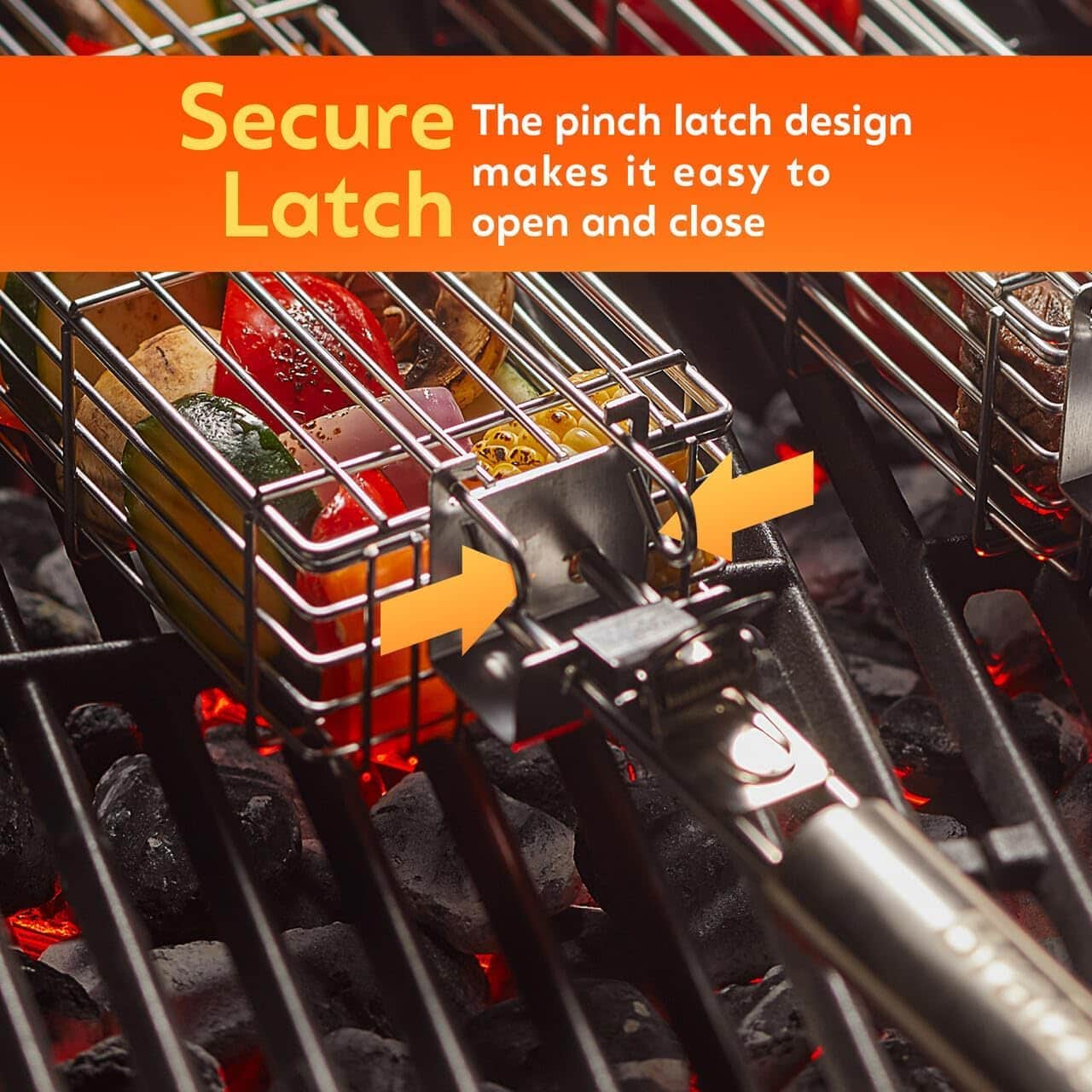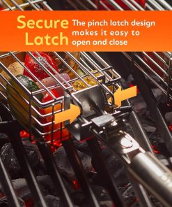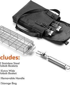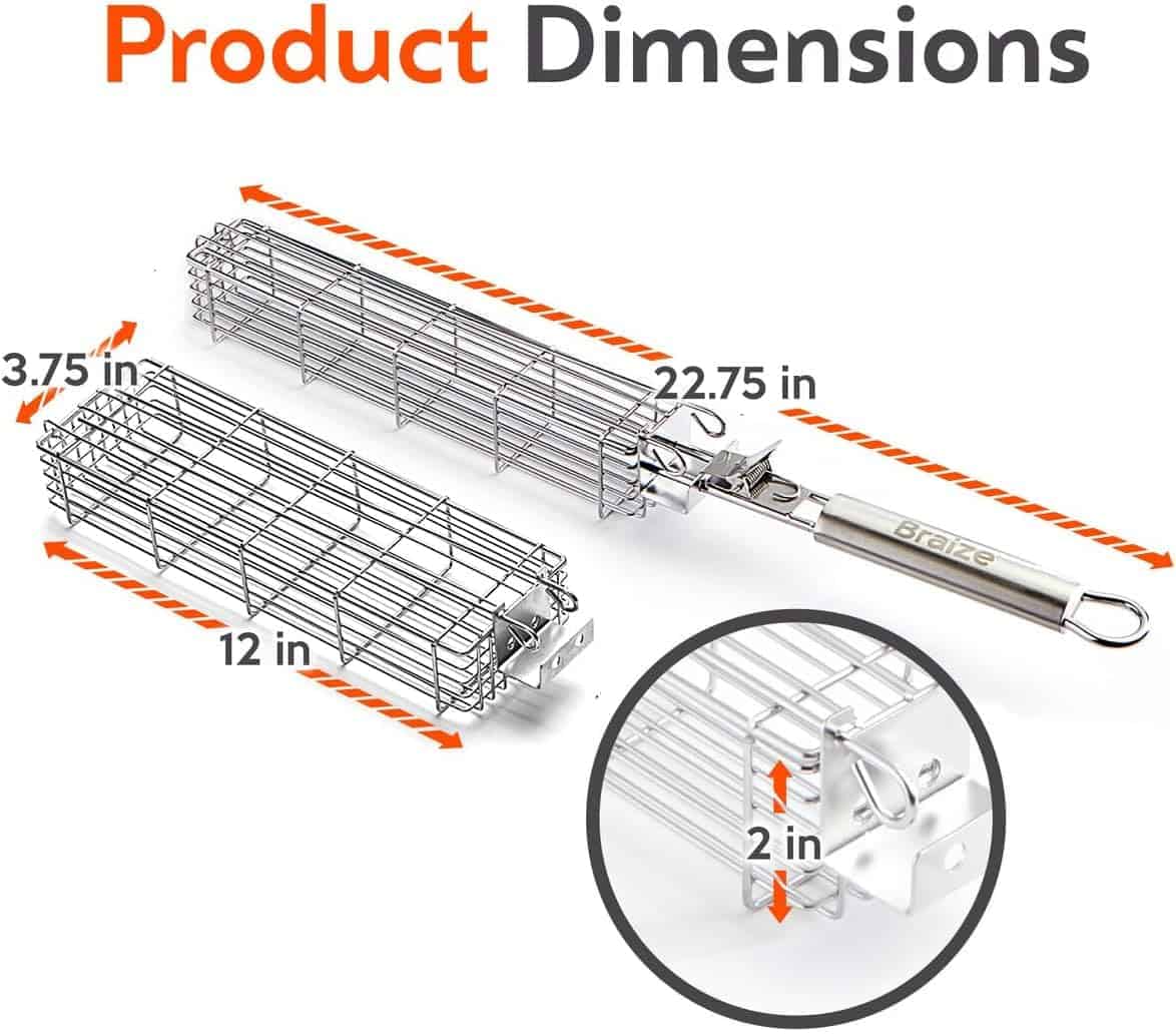 Set de 4 cestas de grill grandes para brochetas de BRAIZE con mango desmontable. Las cestas de grill de acero inoxidable para verduras son ideales para utensilios de grill al aire libre. Con gran capacidad de (12 x 2 x 2) y tapa segura de cierre fácil. Excelente equipo de cocina para acampar en tu grill de campamento. ¡Haz grillar tus brochetas de una manera más segura y efectiva con estas cestas de grill de Braize!