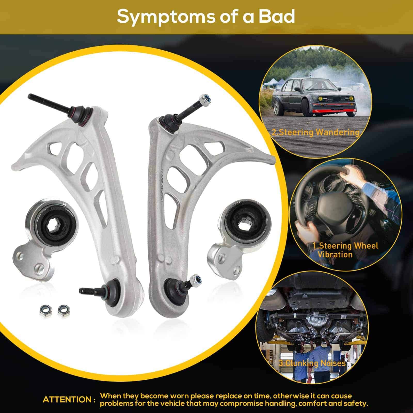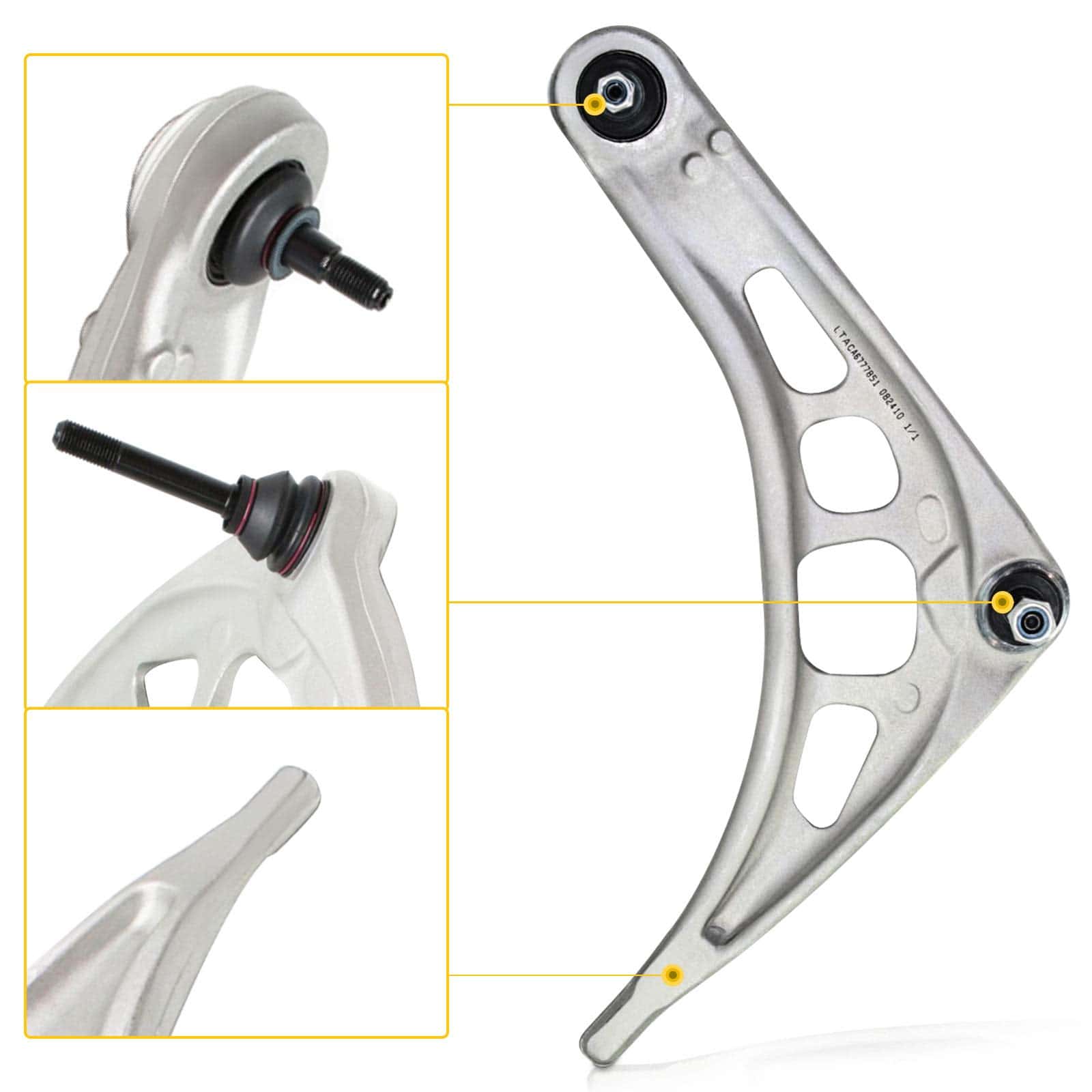 YHTAUTO Brazos de Control de Suspensión de Repuesto OE, Ajuste Directo. Número de OEM: 31126751317, 31126751318, 31126757623, 31126783376, 31126752717, 31126752718 Ubicación: Lado Inferior Delantero Izquierdo y Derecho Cantidad Vendida: Un Juego de Cuatro Piezas Garantía: Un Año de Kilometraje Ilimitado Garantía de Calidad Compatibilidad: Compatible con BMW 323Ci 2000 Delantero, Lado Inferior Modelo E46 Serie RWD Ajuste con BMW 323i 1999-2000 Delantero, Lado Inferior Serie E46 Ajuste con BMW 323iC 1999 Delantero, Lado Inferior Serie E46 Ajuste con BMW 323is 1999 Delantero, Lado Inferior Serie E46 Ajuste con BMW 325Ci 2001-2006 Delantero, Lado Inferior Serie E46 Modelo de 2 Ruedas Directrices Ajuste con BMW 325i 2001-2005 Delantero, Lado Inferior Serie E46 Modelo de 2 Ruedas Directrices Ajuste con BMW 328Ci 2000 Delantero, Lado Inferior Serie E46 Ajuste con BMW 328i 1999-2000 Delantero, Lado Inferior Serie E46 RWD Modelo Ajuste con BMW 328iC 1999 Delantero, Lado Inferior Serie E46 Ajuste con BMW 328is 1999 Delantero, Lado Inferior Serie E46 Ajuste con BMW 330Ci 2001-2006 Delantero, Lado Inferior Serie E46 Modelo de 2 Ruedas Directrices Ajuste con BMW 330i 2001-2005 Delantero, Lado Inferior Serie E46 Modelo de 2 Ruedas Directrices Ajuste con BMW Z4 2003-2008 Delantero, Lado Inferior Serie E85