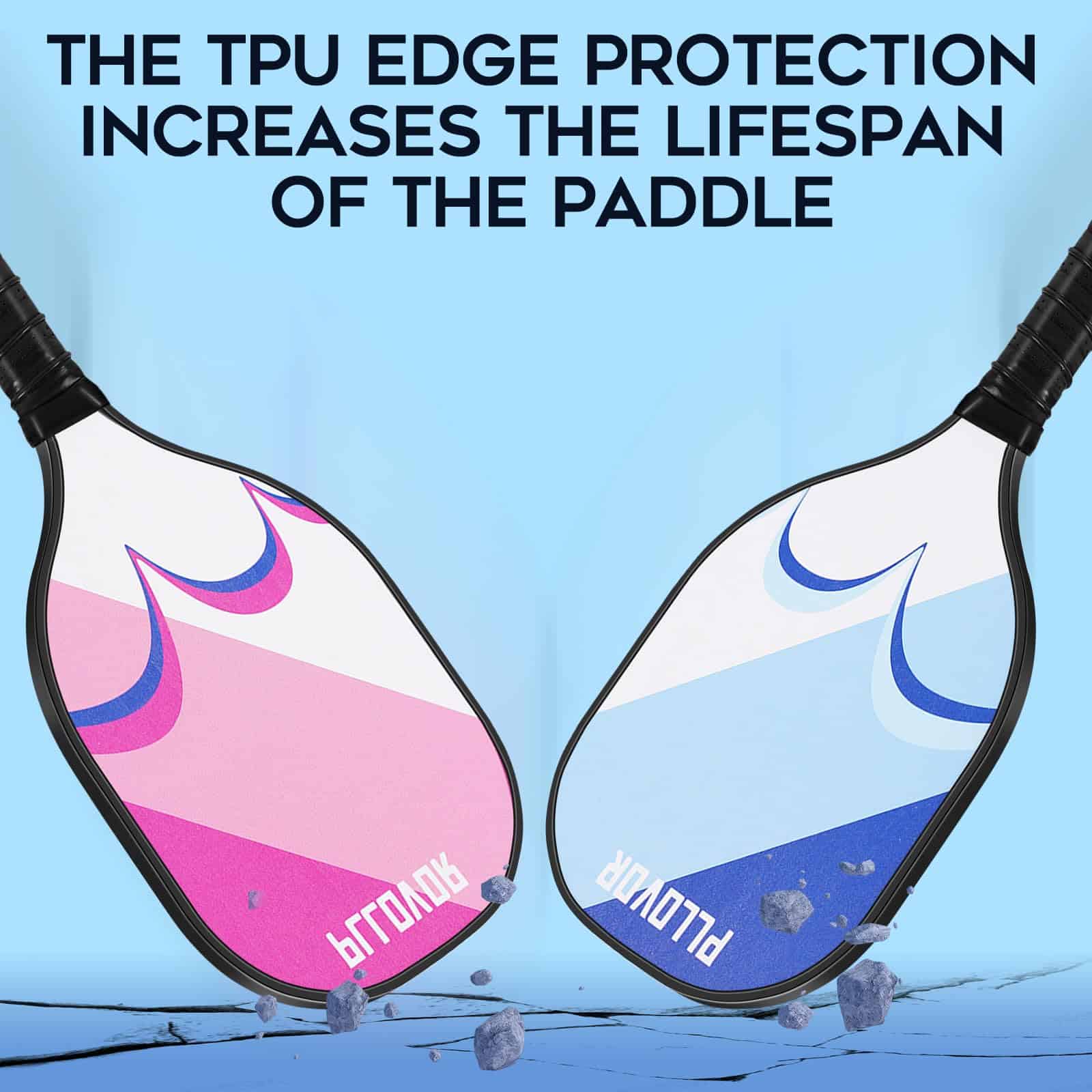 3. Protección de borde duradera de TPU y agarre transpirable para mayor comodidad: Nuestras palas de pickleball cuentan con protección de borde de TPU para mejorar su durabilidad y evitar daños durante el juego casual. El agarre transpirable mantiene las manos secas, proporcionando comodidad durante largas sesiones de juego. Ideal para principiantes, adultos y niños, estas palas ligeras garantizan facilidad de uso, haciéndolas perfectas para juegos ligeros en patios traseros, parques o reuniones familiares.