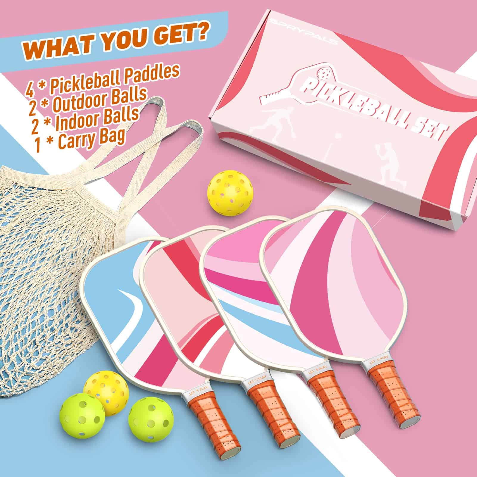 1. Palas de Pickleball aprobadas por la USAPA: Las palas de Pickleball de Sprypals son probadas y aprobadas por la USAPA para jugar al pickleball en torneos en los eventos de pickleball de EE. UU. e internacionales. Utilizamos una superficie de madera de álamo ligera y duradera de 9 capas para un control equilibrado y tiros potentes que hacen que tu juego sea aún mejor. El borde de protección protege contra astillamientos y grietas, mientras que el agarre acolchado perforado proporciona comodidad y precisión.