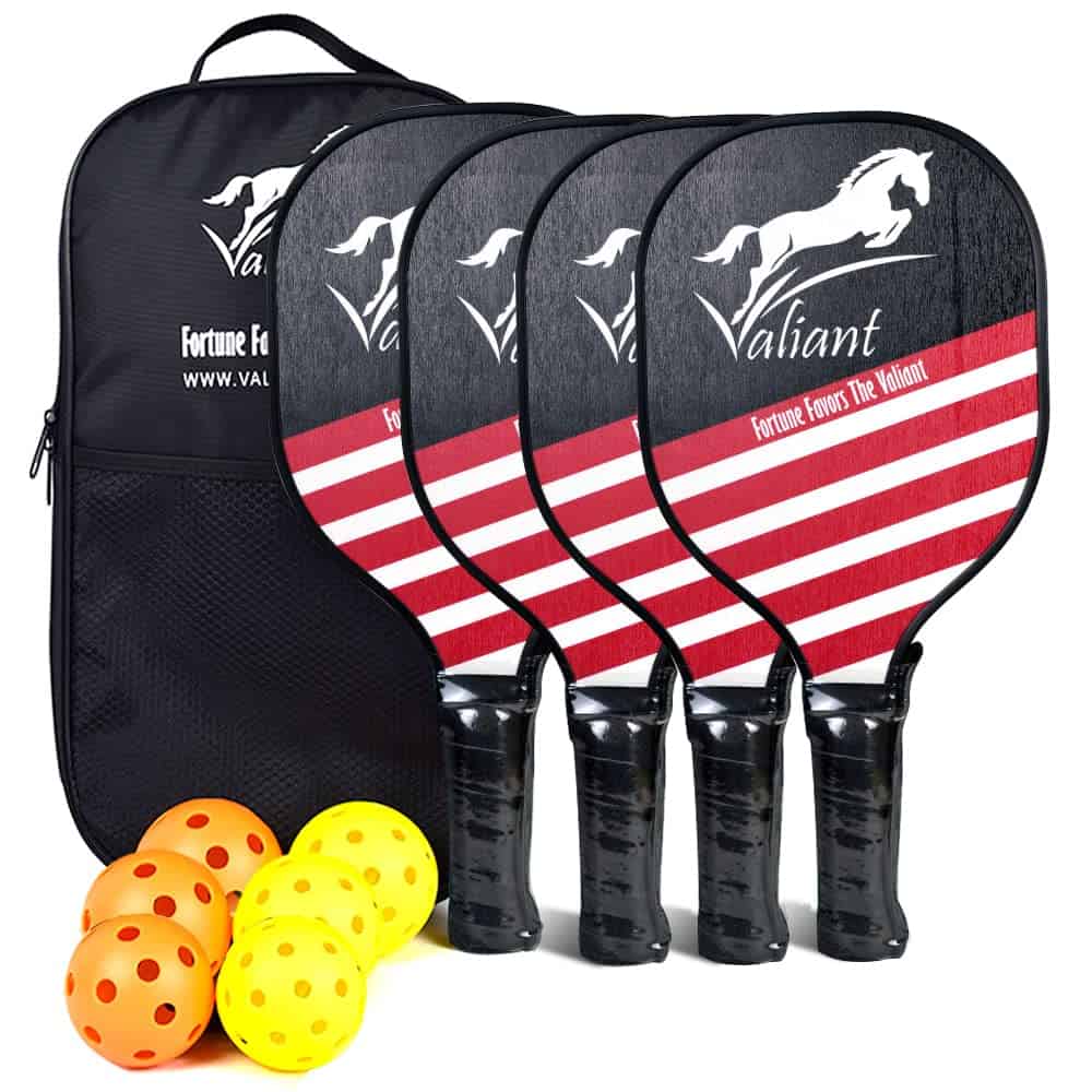 Valiant Sports Pickleball 2 Palas con Pelotas y Estuche de Transporte, Normas USAPA, Pala de Contrachapado de 7 Capas con Protector de Borde, Agarre Superior