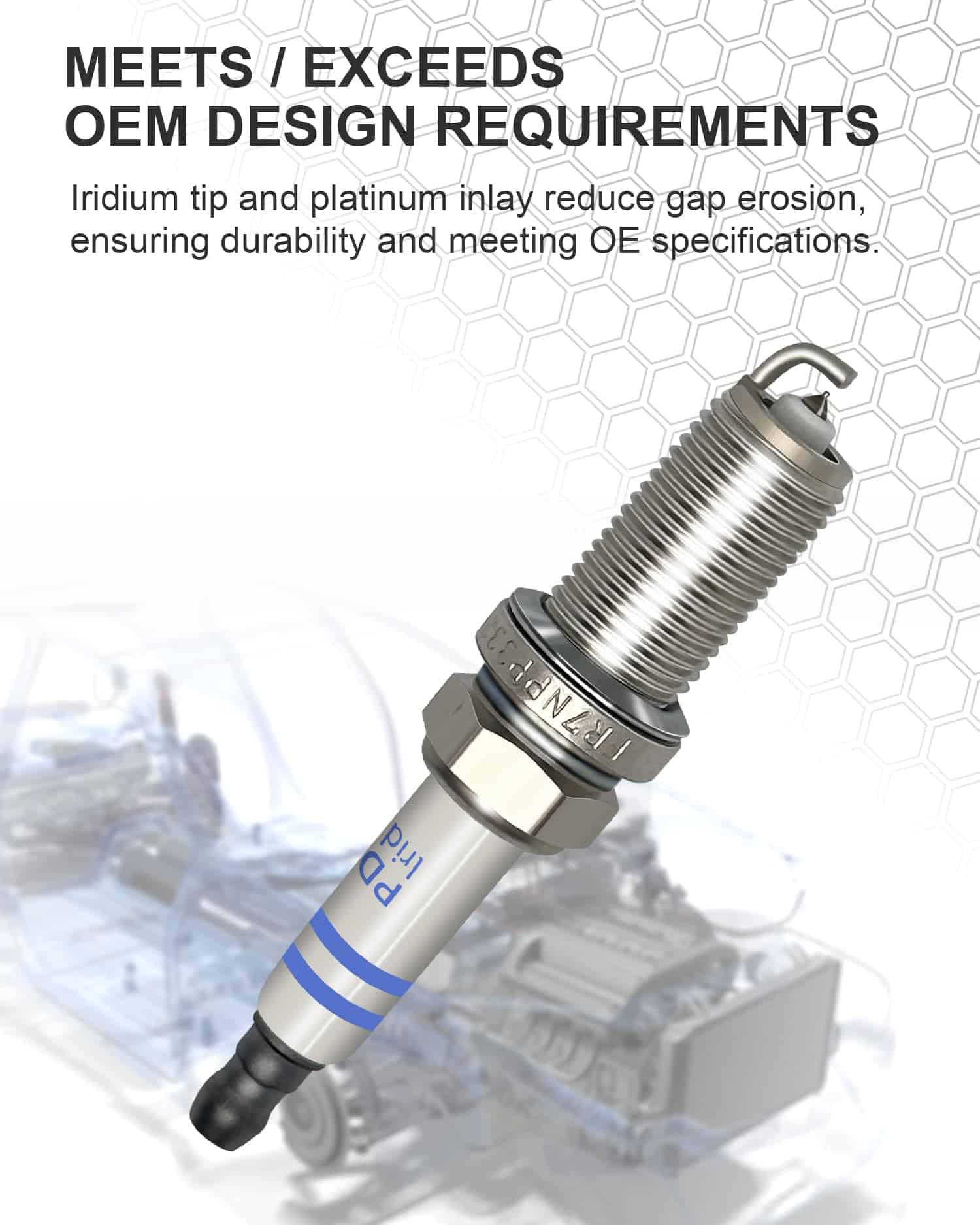 5. Cada componente ya sea coincide o mejora el diseño de OE para asegurar una instalación rápida y sencilla con un rendimiento y fiabilidad superiores y proporcionar una larga vida útil. (las bujías están precargadas en fábrica y listas para instalar directamente de la caja – no se requiere ajuste de espacio antes de la instalación)