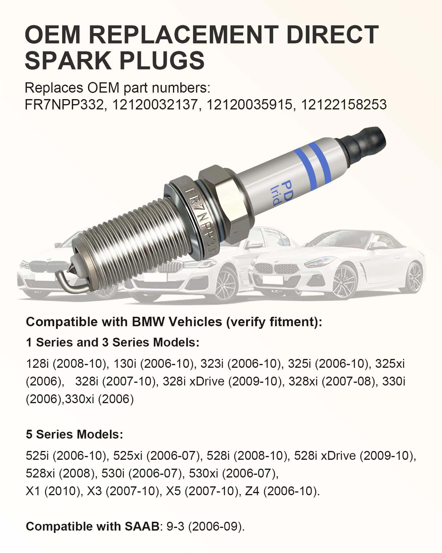 2. Cumple o supera los requisitos de diseño del fabricante para un ajuste, forma y función de OE para motores de gasolina modernos, Reemplaza OEM: FR7NPP332, 12120032137, 12120035915, 12122158253.