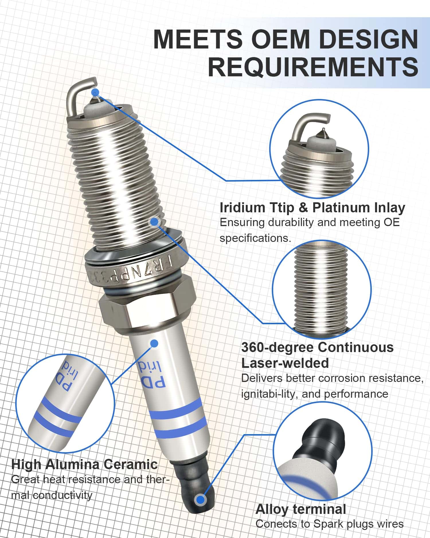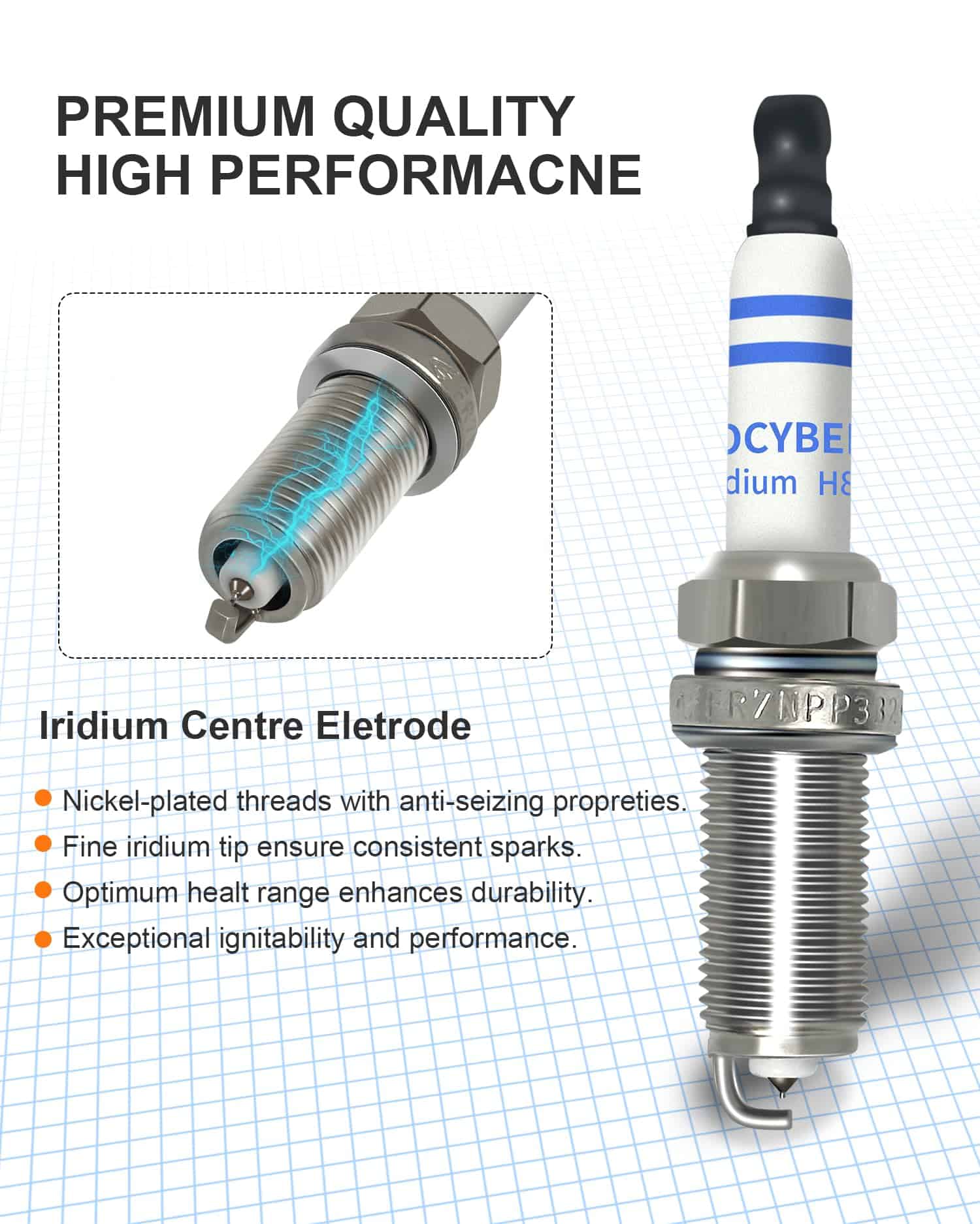 4. Las bujías de Iridio OE de POCYBER cuentan con un pasador de encendido de iridio e incrustación de electrodo de masa que proporcionan una vida útil 3 veces más larga en comparación con las bujías estándar de cobre.
