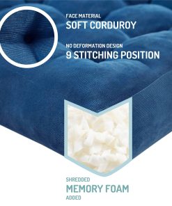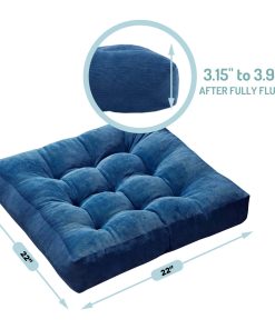 Set de 6 Cojines para Piso de Meditación, Cojines Grandes Cuadrados de Asiento para Adultos, Cojín de Suelo de Pana Tufada para Sala de Estar Tatami de 22×22 Pulgadas en color Azul Marino. Nuestro cojín de piso está relleno con espuma de memoria, lo que lo hace mejor en velocidad de rebote y durabilidad en comparación con otros en el mercado que están rellenos de ALGODÓN DE PP. Este cojín se restaura fácilmente a su forma original bajo cualquier peso y proporciona mucho apoyo para sentarse cómodamente durante largos períodos de tiempo. Su grosor de 3.15-3.94 pulgadas (8-10 cm) es lo suficientemente mullido para 2 niños o 1 adulto, con un soporte de alta calidad que evitará que sienta el suelo o la silla al sentarse. Disponible en una variedad de colores sólidos que pueden combinar con cualquier estilo de habitación. Este cojín es multifuncional y ligero, lo que lo hace fácilmente transportable para proporcionar espacio adicional de asiento en su habitación, balcón y área al aire libre. Es ideal para disfrutar de la lectura, beber, charlar, meditar, jugar juegos de mesa, jugar con los niños y ver la TV. Viene con un bonito empaque, lo que lo convierte en un regalo perfecto para fiestas de inauguración, cumpleaños, festivales y cualquier ocasión especial. Fabricado con tela de pana suave, es suave al tacto y está cuidadosamente construido con nueve puntos de costura para evitar deformaciones y dar un soporte extra a su espalda, aliviando el dolor de espalda. Para una mejor y prolongada duración, se recomienda limpiar solo por manchas y no lavar el cojín. Al recibirlo, exponga el cojín durante varias horas para que se expanda a su tamaño indicado.