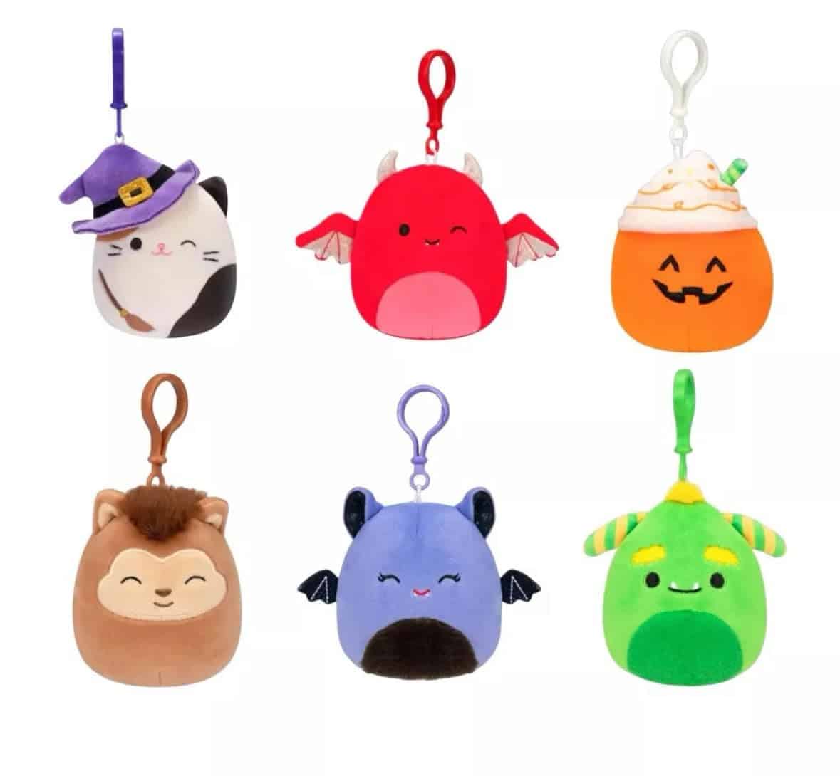 Introduciendo el Set de 6 Mini Peluches de Halloween Squad Squishmallows de 3.5″ con Llavero Recortable! Estos adorables y escalofriantes juguetes de peluche son perfectos para la temporada de Halloween. El set incluye un gato negro con sombrero de bruja, un murciélago rojo con alas, una calabaza para dulces, un erizo marrón, un murciélago azul, y un monstruo verde. Cada muñeco de peluche mide 3.5 pulgadas y cuenta con un clip para adjuntar a mochilas, llaveros o donde desees. Con sus texturas suaves y abrazables, estos mini peluches son excelentes coleccionables o regalos para niños y adultos por igual. ¡Lleva el espíritu de Halloween a donde quiera que vayas con este encantador grupo de personajes Squishmallows!