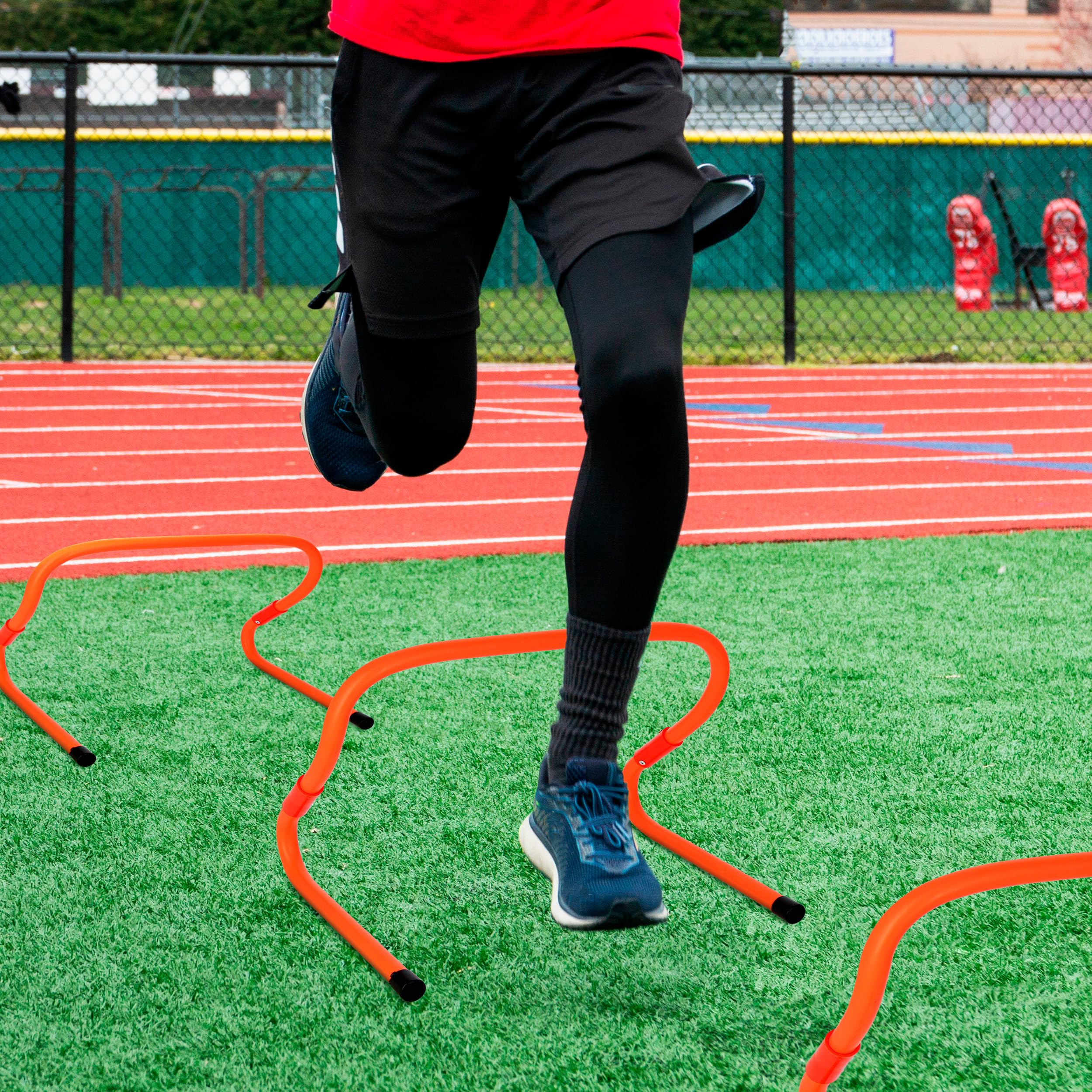 Mejora tu entrenamiento deportivo con el Set de 6 Vallas de Entrenamiento de Agilidad Get Out! Diseñadas para mejorar tu agilidad, velocidad y destreza, estas vallas de entrenamiento de velocidad te ayudarán a alcanzar tu máximo rendimiento atlético. Las patas giratorias permiten ajustar las vallas de velocidad para fútbol a alturas de 8.5 o 12.5 pulgadas para diferentes niveles de habilidad. Colócalas en el campo, la cancha o en tu entrada para realizar diversos ejercicios y aumentar la dificultad de tus entrenamientos. Con una calidad excepcional, estas vallas de entrenamiento de plástico mantendrán su forma cuando se caigan y proporcionarán estabilidad durante tus sesiones de entrenamiento. Ya sea que seas un principiante o un jugador profesional, estas vallas de salto y sprint serán una adición perfecta a tu equipo de entrenamiento de agilidad. ¡Potencia tu rendimiento atlético con las Vallas de Entrenamiento de Agilidad Get Out!.