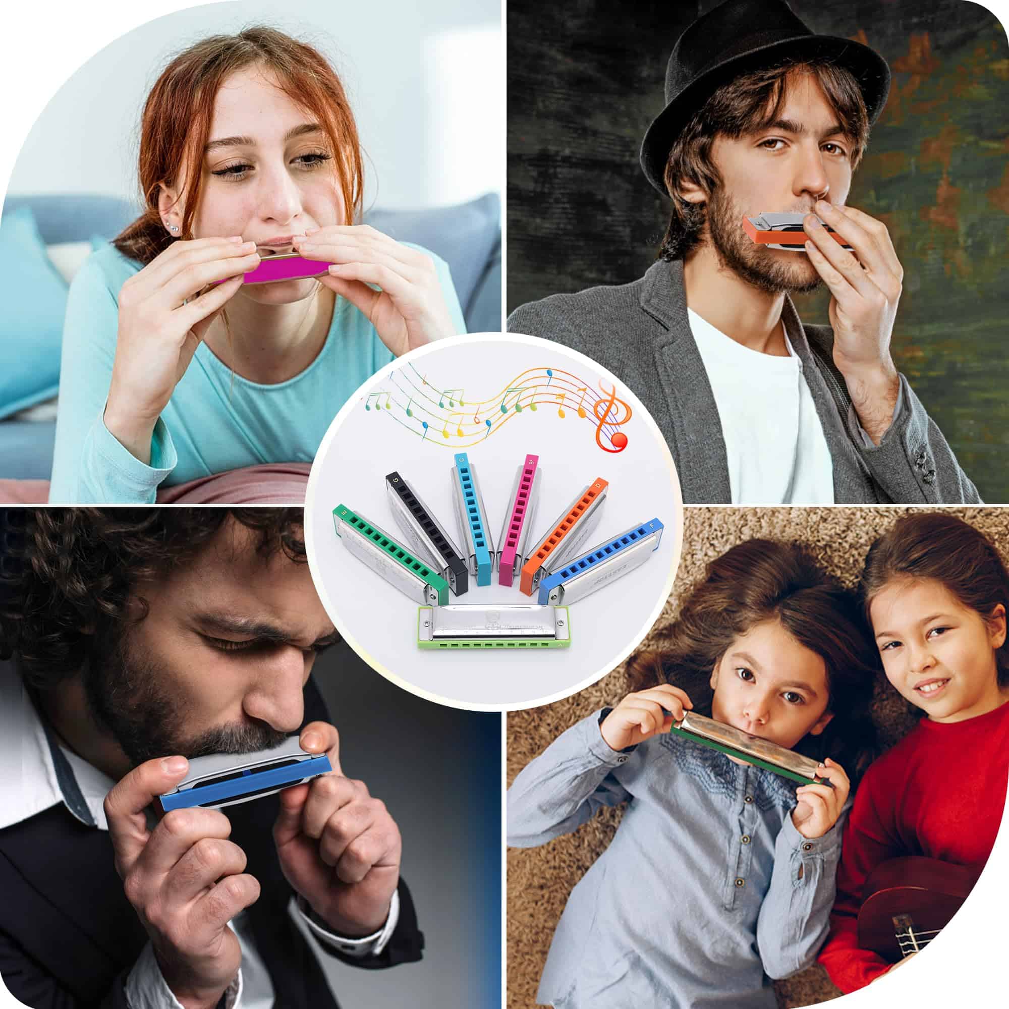 Set de 7 armónicas Easttop, 10 agujeros 7 colores Armónica
