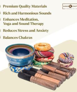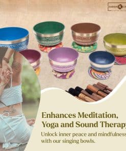 1. Set de 7 Cuencos Tibetanos de Meditación – Nuestro set incluye 7 cuencos tibetanos del Himalaya con una variedad de tamaños para diversas técnicas de sanación y meditación con baño de sonido. Viene con 7 mazos y 7 cojines. 2. Equilibrio de Chakras y Sanación – Cada cuenco tibetano corresponde a uno de los siete chakras y puede ser utilizado para equilibrar el flujo de energía y promover la sanación y meditación. 3. Hecho a Mano por Artesanos Expertos – Nuestros cuencos tibetanos son hechos a mano por artesanos expertos en Nepal utilizando técnicas tradicionales transmitidas de generación en generación, con cada cuenco teniendo un carácter único. 4. Un Hermoso y Significativo Regalo – Nuestros cuencos tibetanos son el regalo espiritual perfecto para sus seres queridos. Ideal para cumpleaños, bodas, inauguraciones u cualquier ocasión. 5. Mejora tu Práctica de Meditación – Nuestros cuencos tibetanos son perfectos para la meditación, yoga y otras prácticas espirituales. Mejora tu atención plena y experimenta estados más profundos de relajación y paz.