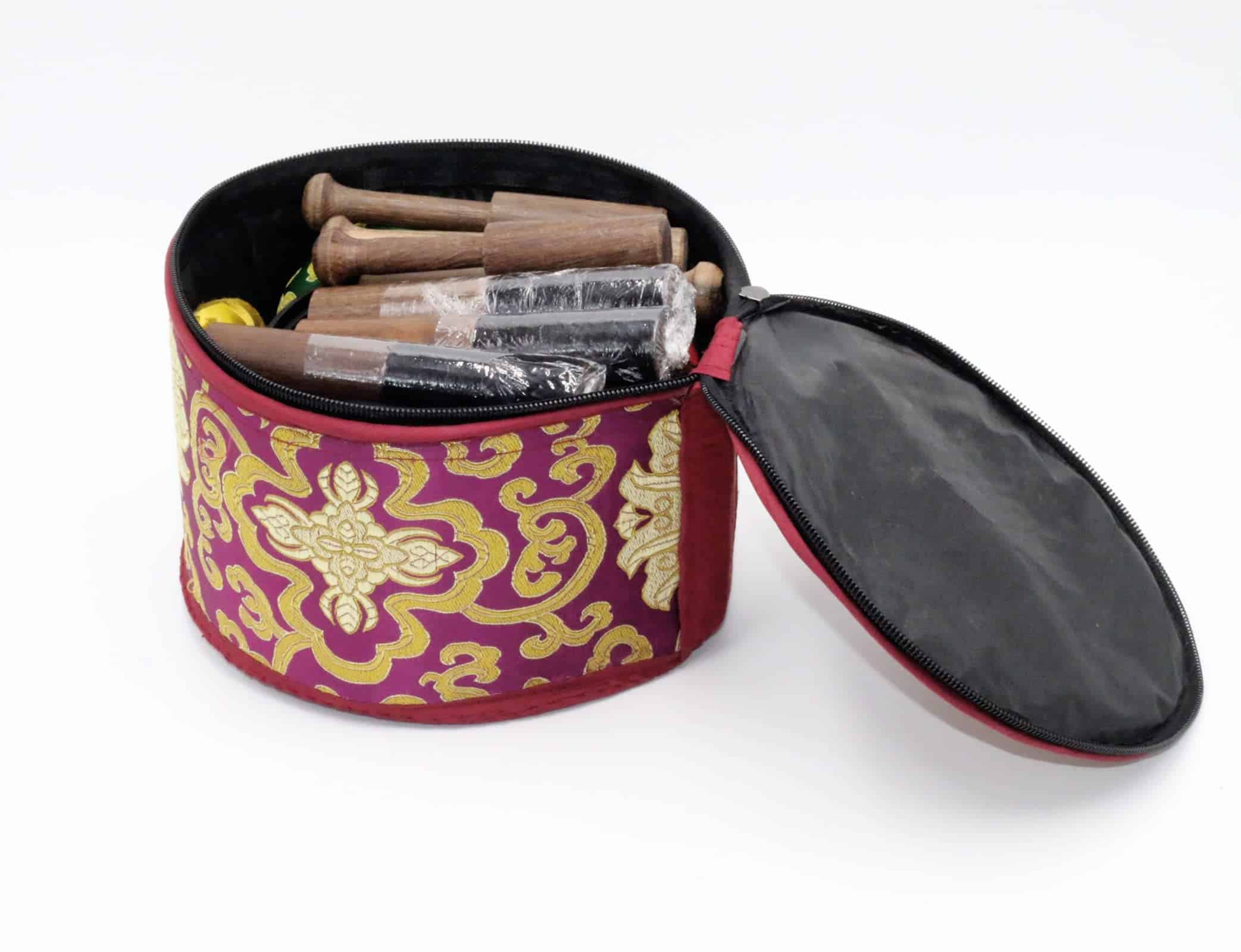 El cuenco tibetano es una campana vibrante que produce un tono rico y profundo y se utiliza para terapia del sonido y sanación espiritual. Los cuencos tibetanos afectan y armonizan profundamente el cuerpo y el alma. Tradicionalmente hechos de siete metales que corresponden a los siete planetas visibles, el cuenco tibetano promueve un masaje sonoro profundo y mejora el estado de relajación. Frotar un cuenco tibetano hace que cante y es de donde deriva su nombre. La ciencia detrás del proceso es que un tono se potencia y los demás desaparecen, creando un sonido puro y penetrante. El palo de madera sin barnizar de diámetro más pequeño que viene junto con tu cuenco tibetano, frotándolo alrededor del borde del cuenco creará el sonido de zumbido. Presiona firmemente el palo de madera contra el borde del cuenco para evitar un sonido de traqueteo. Piensa en ello como montar una ola mientras arrastras lentamente y presionas el mazo alrededor del cuenco en círculos. Frotar gradualmente sacará el canto. A veces un ligero toque para comenzar el sonido, luego empezar a frotar lo hará funcionar más fácilmente.