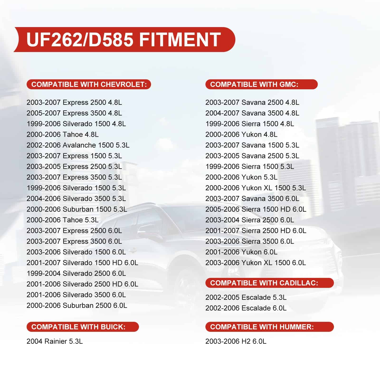 4. Compatible con GMC Envoy XL 2003-2004, Savana 1500 2500 3500 2003-2007, Sierra 1500 1999-2006, Sierra 2500 2000-2007, Sierra 3500 2003-2007, Yukon & XL1500 2000-2006, Compatible con Buick 2004-2005, Compatible con Cadillac Escalade 2002-2006, Compatible con Hummer H2 2003-2007.